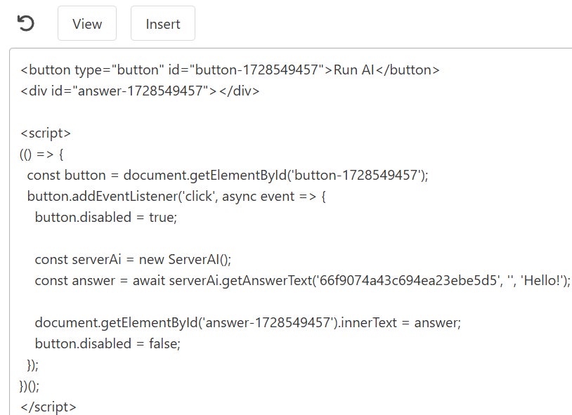 7.「Run AI」ボタンを押すとAIの返答が表示される