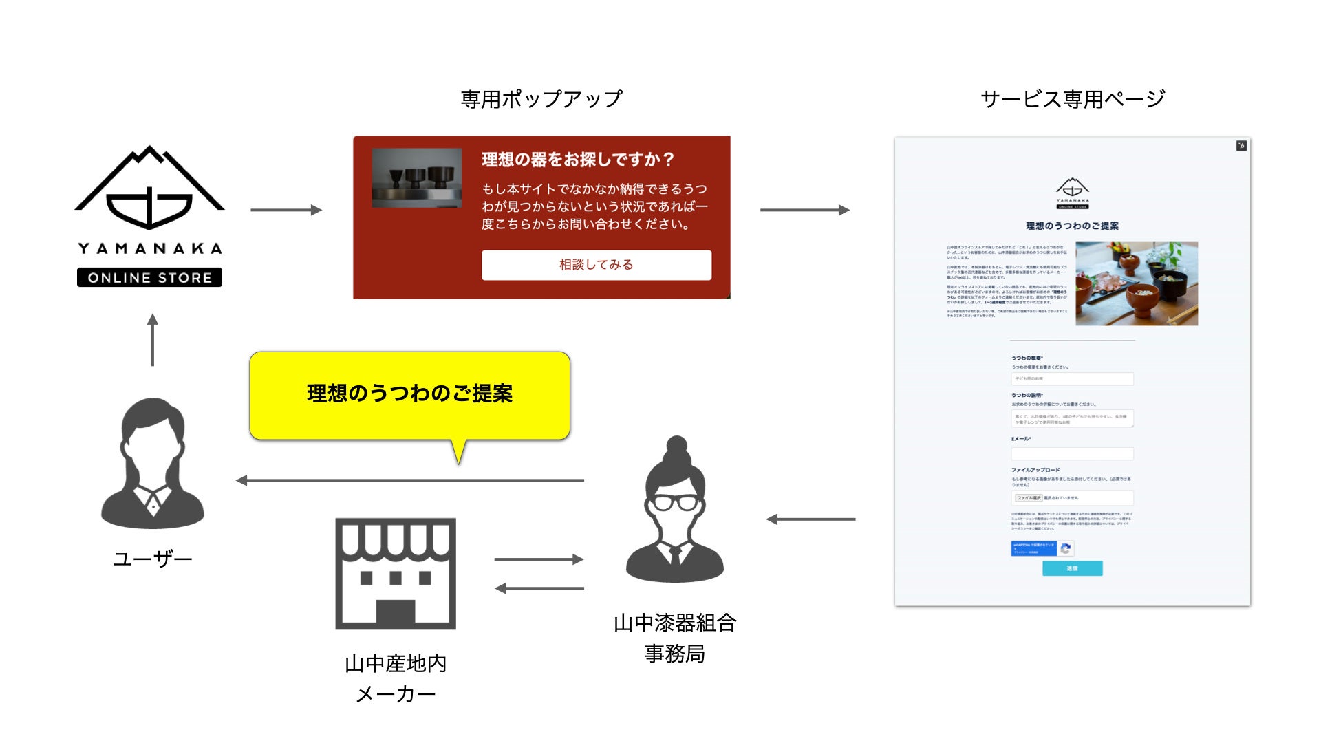 こうした課題に対応するべく、組合は公式オンラインストアに一般消費者向けのコンシェルジュサービス「理想のうつわ探し」を開始しました。「山中塗」ブランドの窓口を一本化して問い合わせを集約し、より柔軟に消費者のニーズに対応できる仕組みを構築することで、産地全体の売上増とブランド力向上を目指します。