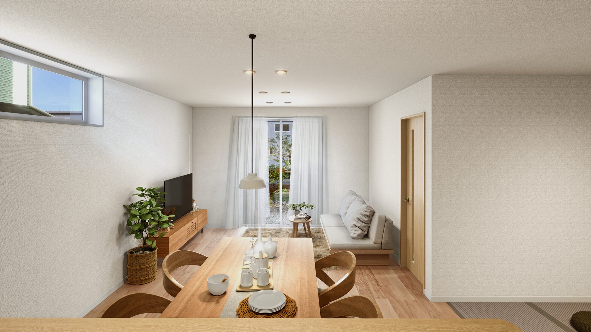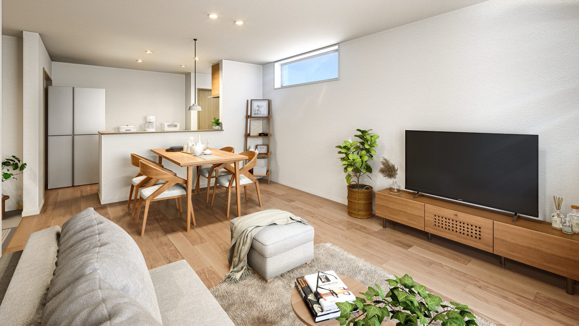 さらに、第一種換気システム(熱交換型)も標準採用し、年中快適でクリーンな住環境をキープ。保障については、最長60年の長期保証に加え、地震時の修繕・建て替え費用の100%保証付きで、建てた後もずっと安心。性能も保証もこれだけハイレベルな自由設計の家が、月々5万円台の返済で叶います。