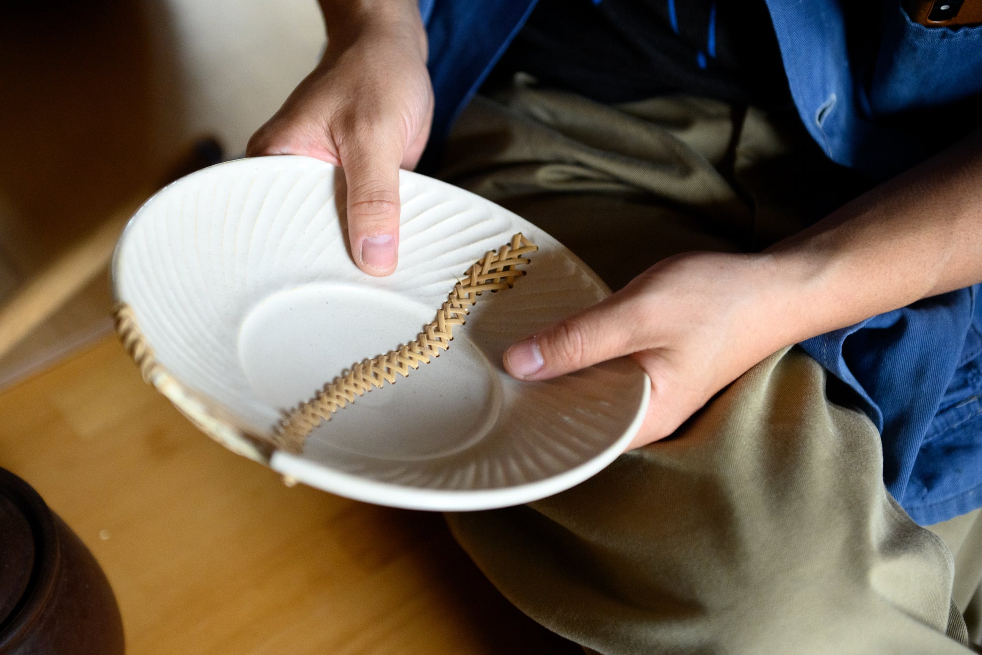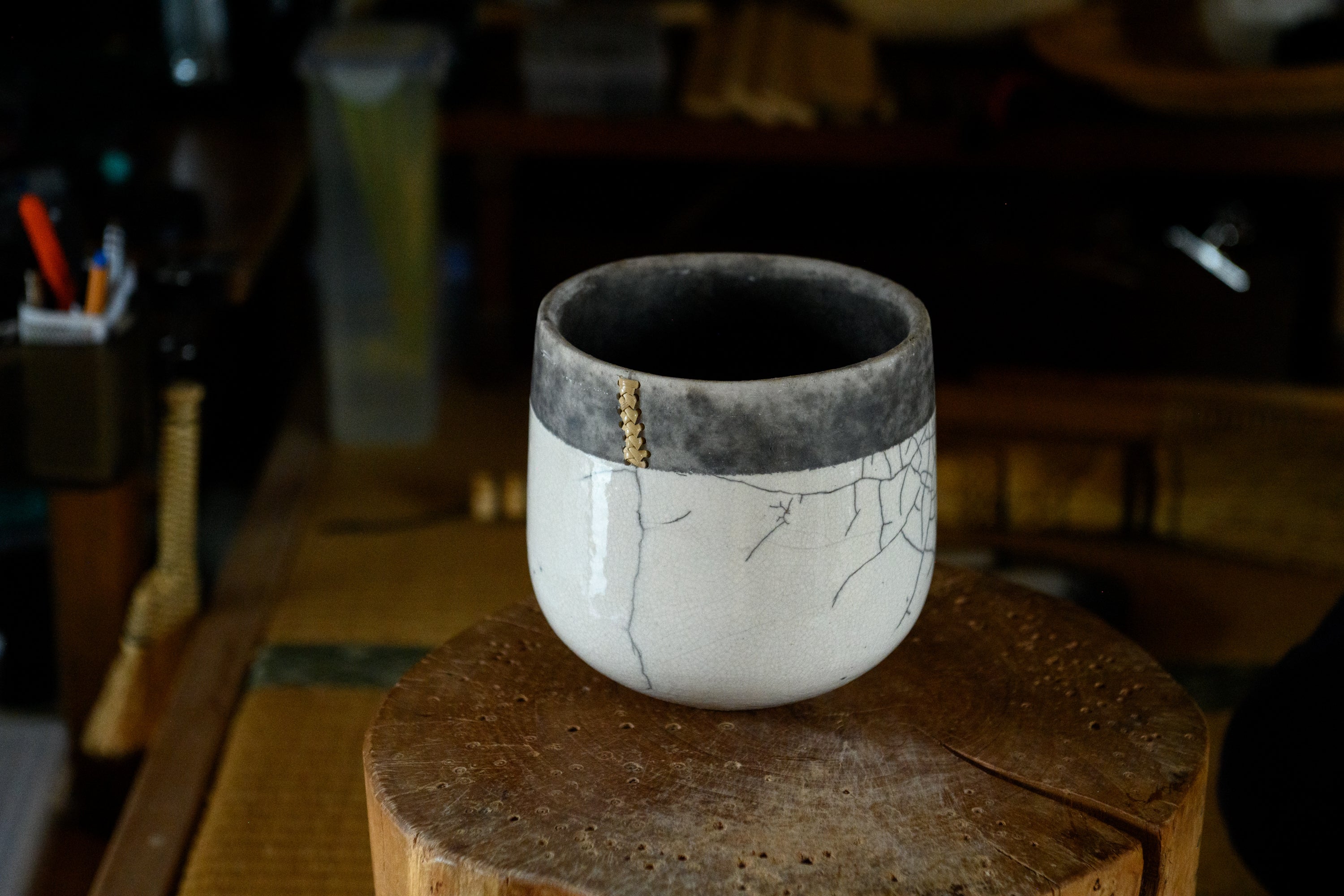 長年その答えが見つけだせなかった私たちにとって一筋の光となったのが、籐継ぎや籐巻き、鎹(かすがい)継ぎの技法を用いて器の修復を手掛ける小林研哉さんとの出会いでした。東欧の伝統技術に裏付けられた「DOMANI」のプランターや「Henry Dean」のフラワーベース、そして日本で長く親しまれてきた籐工芸を修復の技法として昇華させる小林さんの手仕事。それらが共鳴したとき、新たな価値を生み出すのではないだろうか。プロダクトは息を吹き返し、いきいきと輝きを放つのではないだろうか。