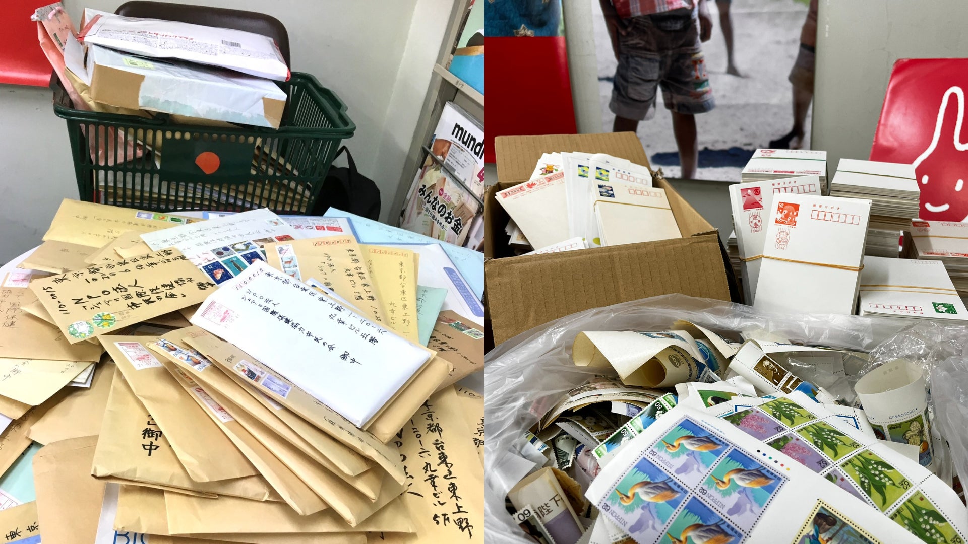 ~全国から送られてきた書き損じハガキや使用済み切手~