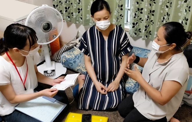 ~日本_保健師と一緒に妊婦宅を訪問していいる医療通訳者~