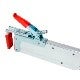 平ボディトラックの荷台内寸に合わせて本体を伸縮し、両サイドのアオリにロック部を挟んでハンドルで固定するだけの簡単設計で直感的に操作できます。