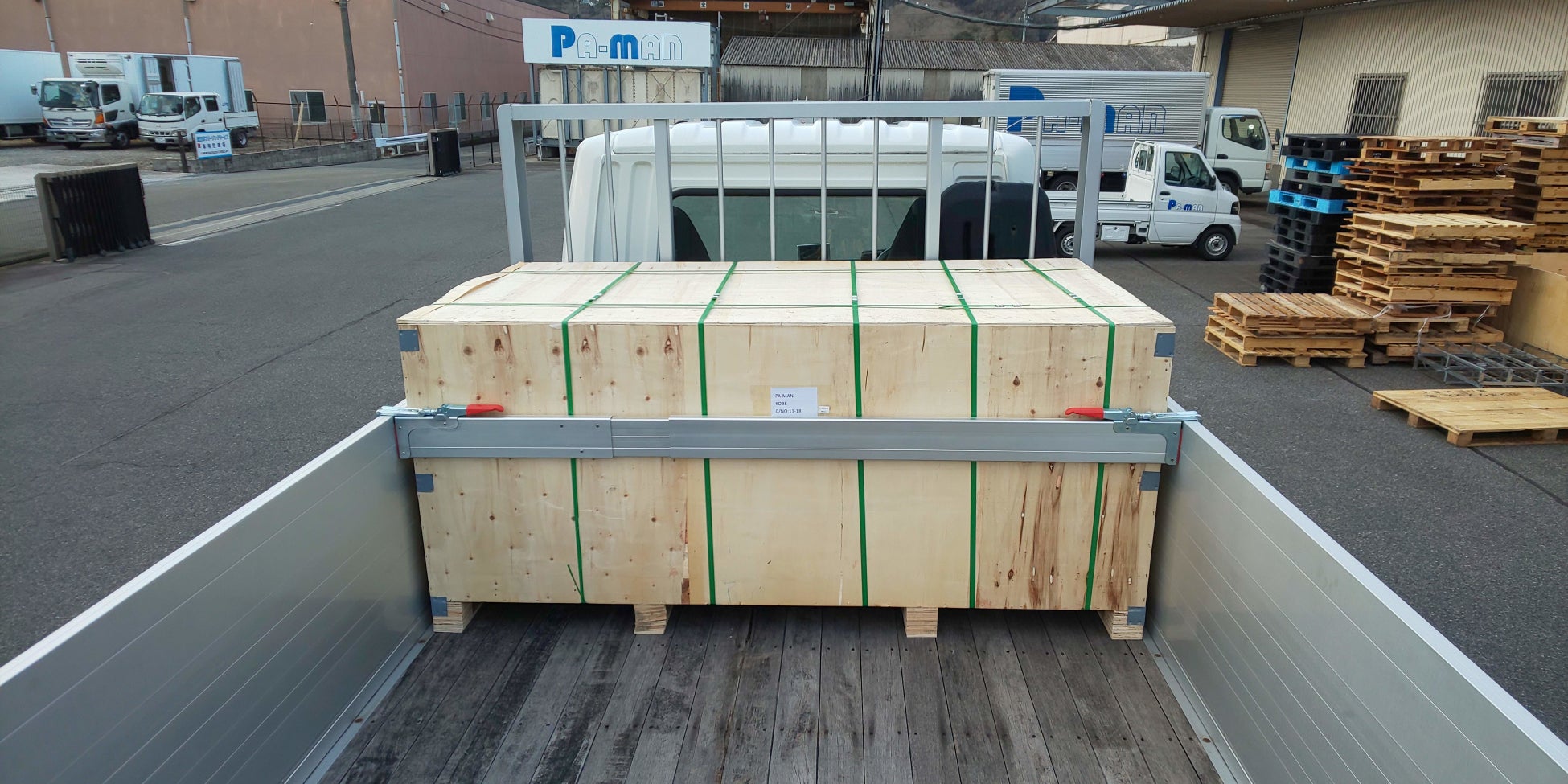 株式会社パーマンコーポレーション(本社:大阪市西区、代表取締役:中部祥元)は、今までバンボディトラック、ウィングボディトラックで使用されていた荷物を押さえるショーリング・バー(ラッシングバー)を平ボディトラックでも使用したいというニーズを基に、本商品を開発しました。本体材質にはアルミを使用し、6.9kgと軽量な為、持ち運びや操作性にも配慮しました。