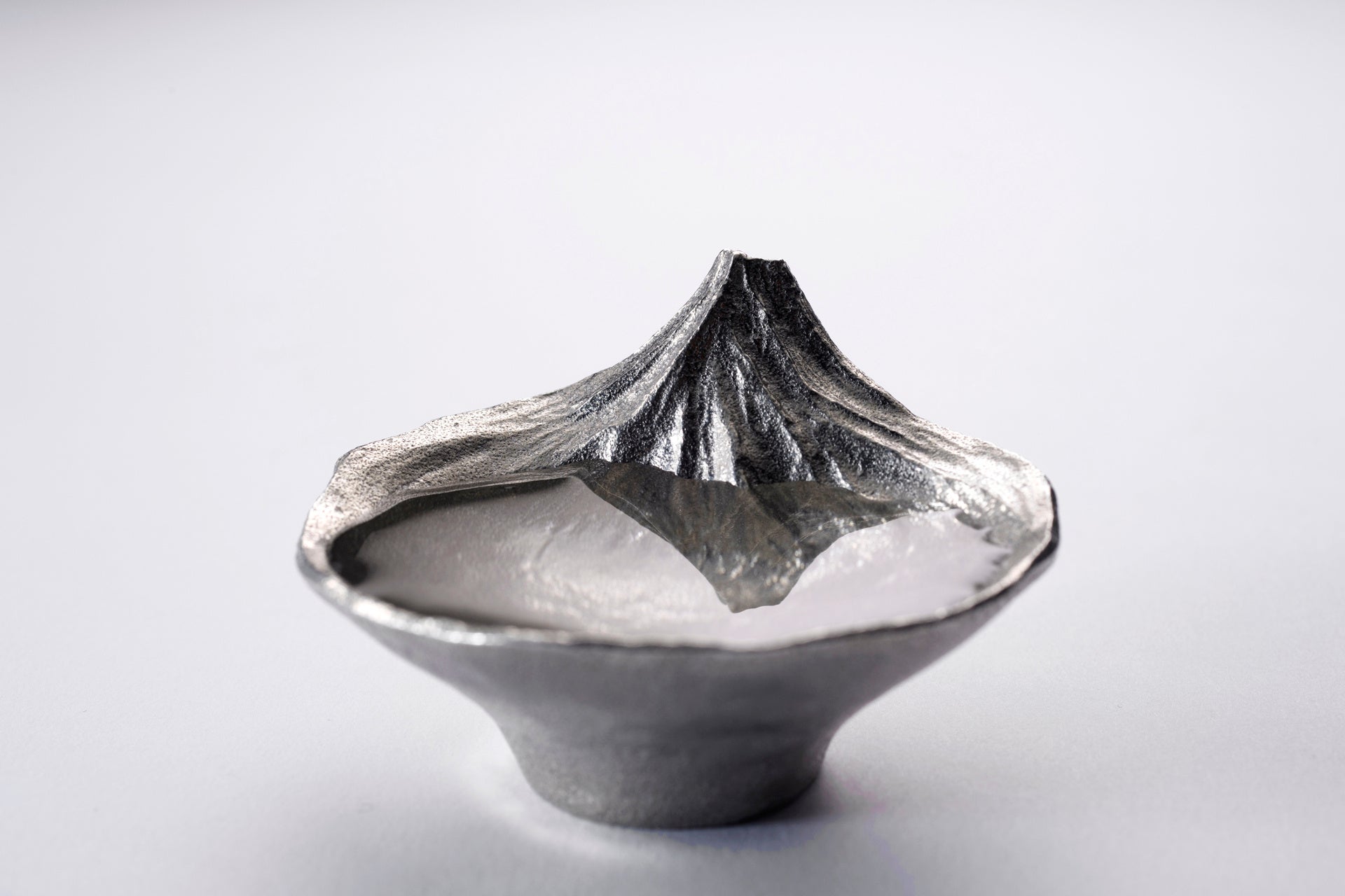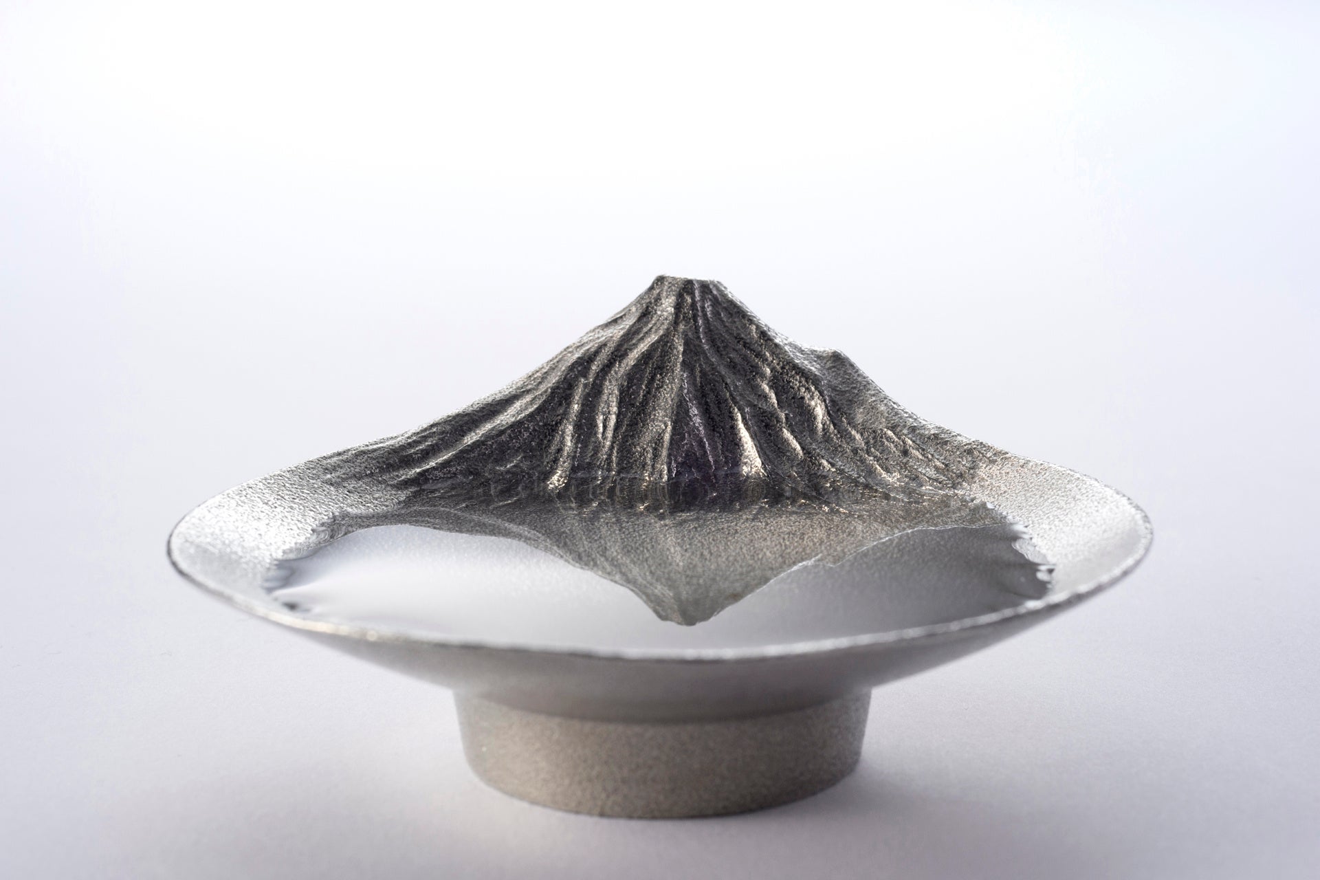 湖面に映る霊峰富士の情景をモチーフにした花器。銀雅堂より富士山シリーズの新作『さかさ富士 花器 Largeサイズ』が6月1日より販売中。