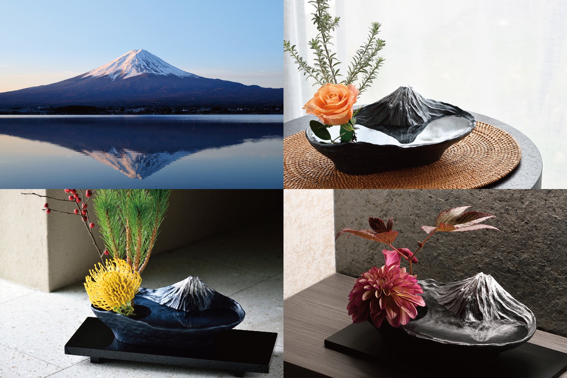 花器の器に水をそそぐと、水面にさかさ富士が映り込みます。より雄大なLargeタイプを追加。