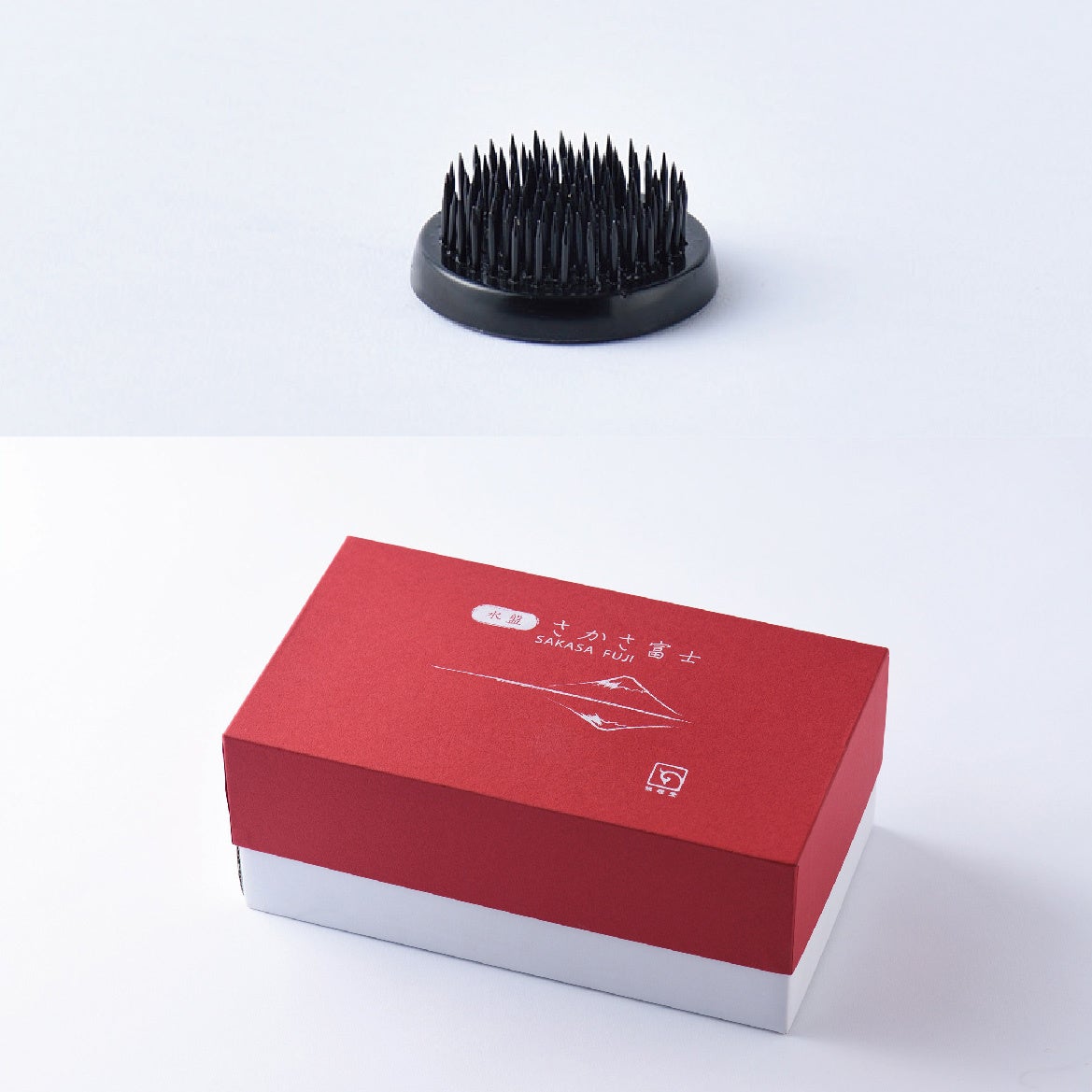 ■共通:同梱している剣山は黒塗装したタイプを選定。存在を隠し、花材と富士山風景を邪魔せずに使えます。
