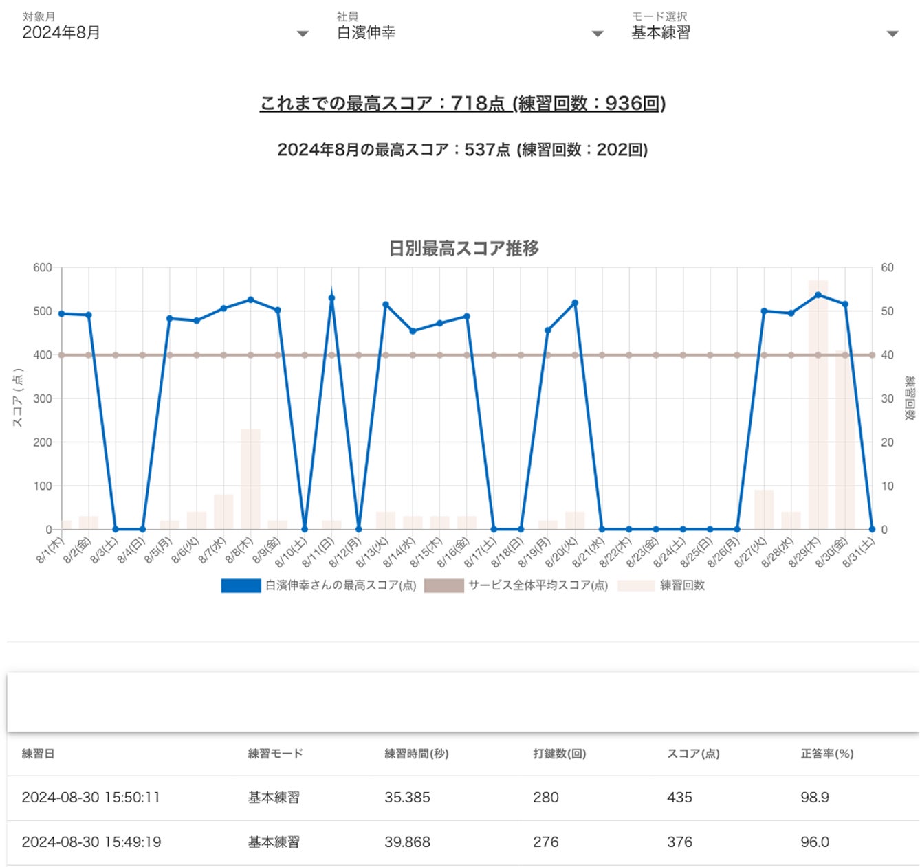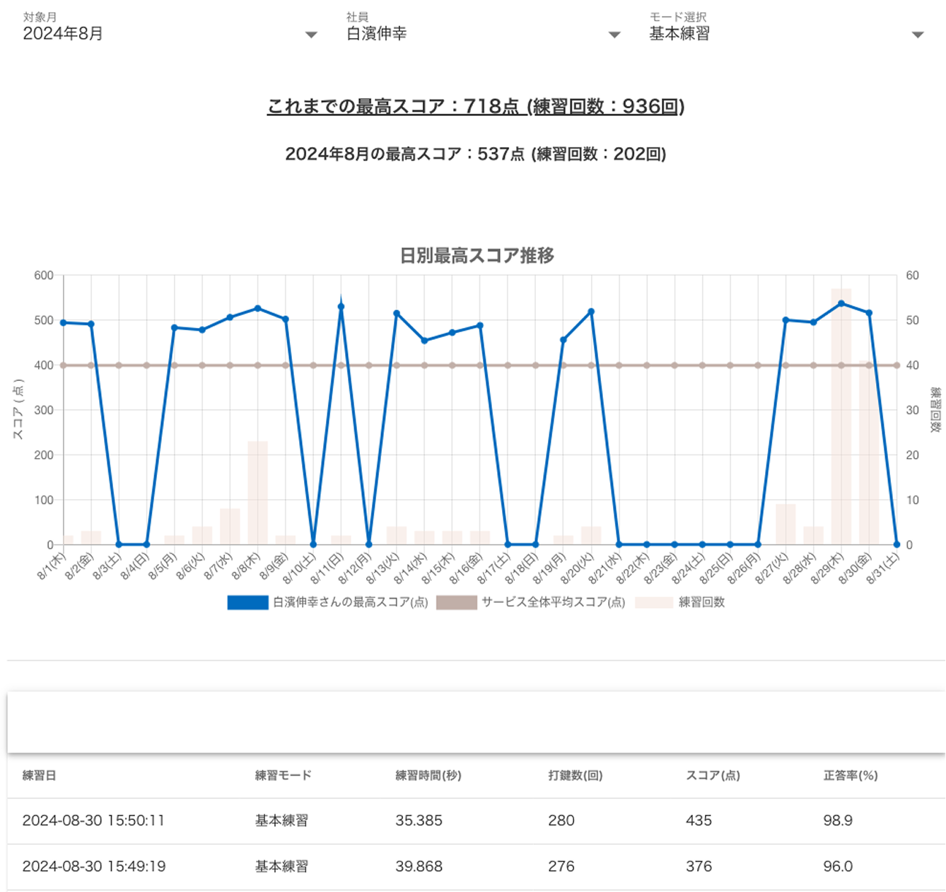 管理者の方は生徒や社員の練習成績を管理するための各種管理機能を利用することができます。