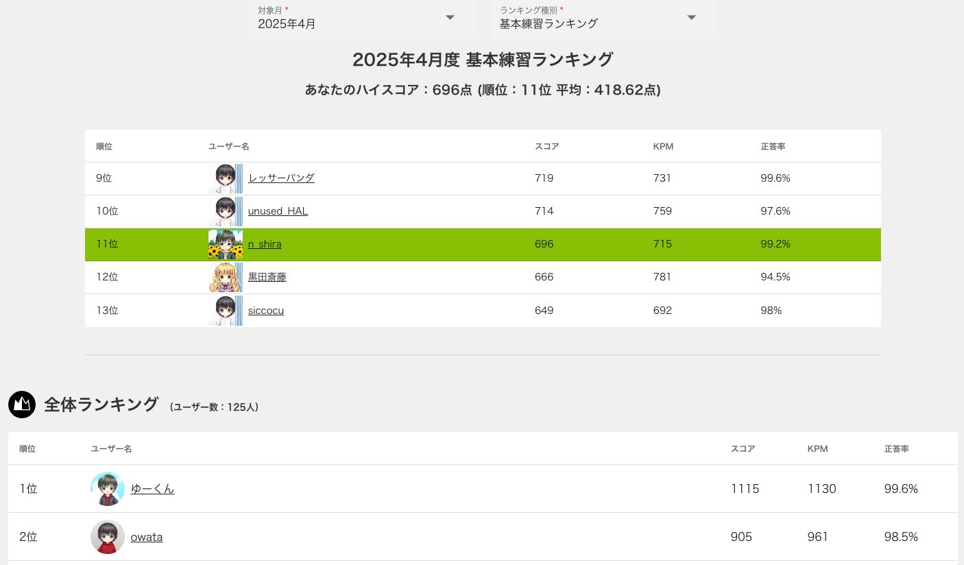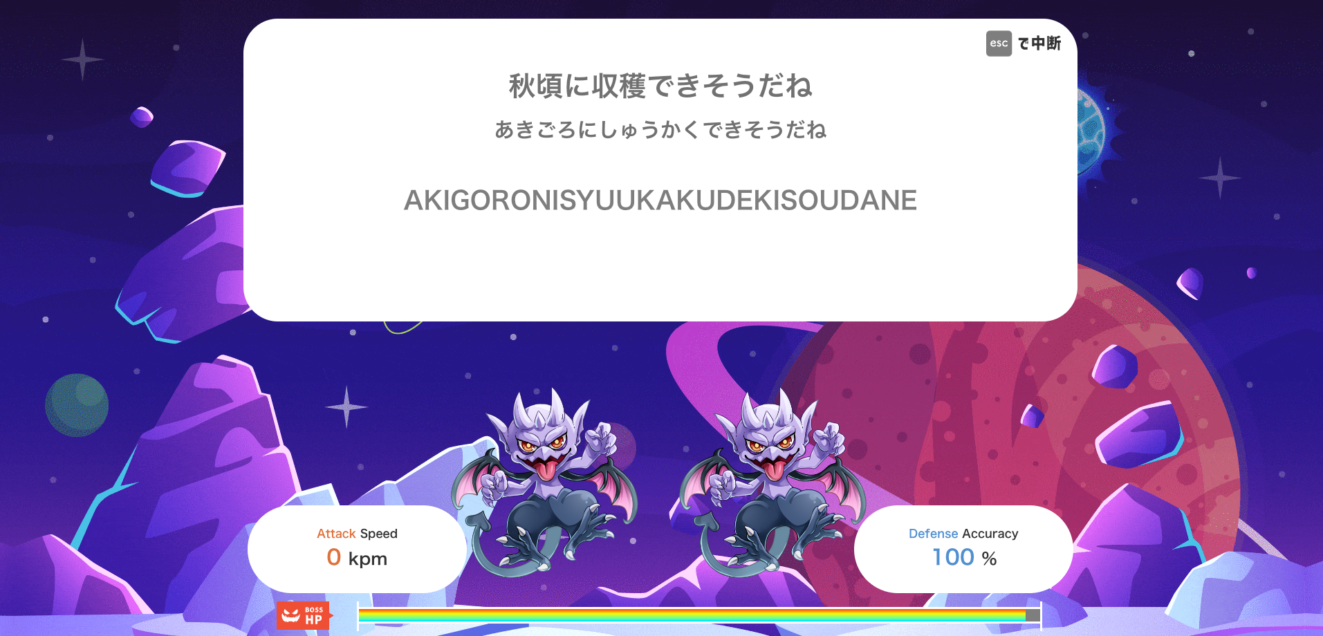 タイピング練習画面