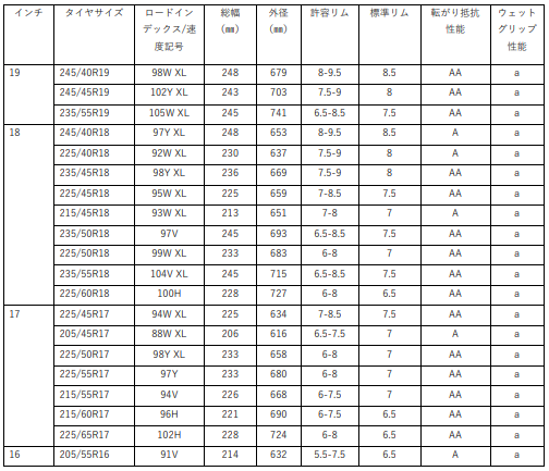 【Cinturato ROSSO導入予定サイズ】