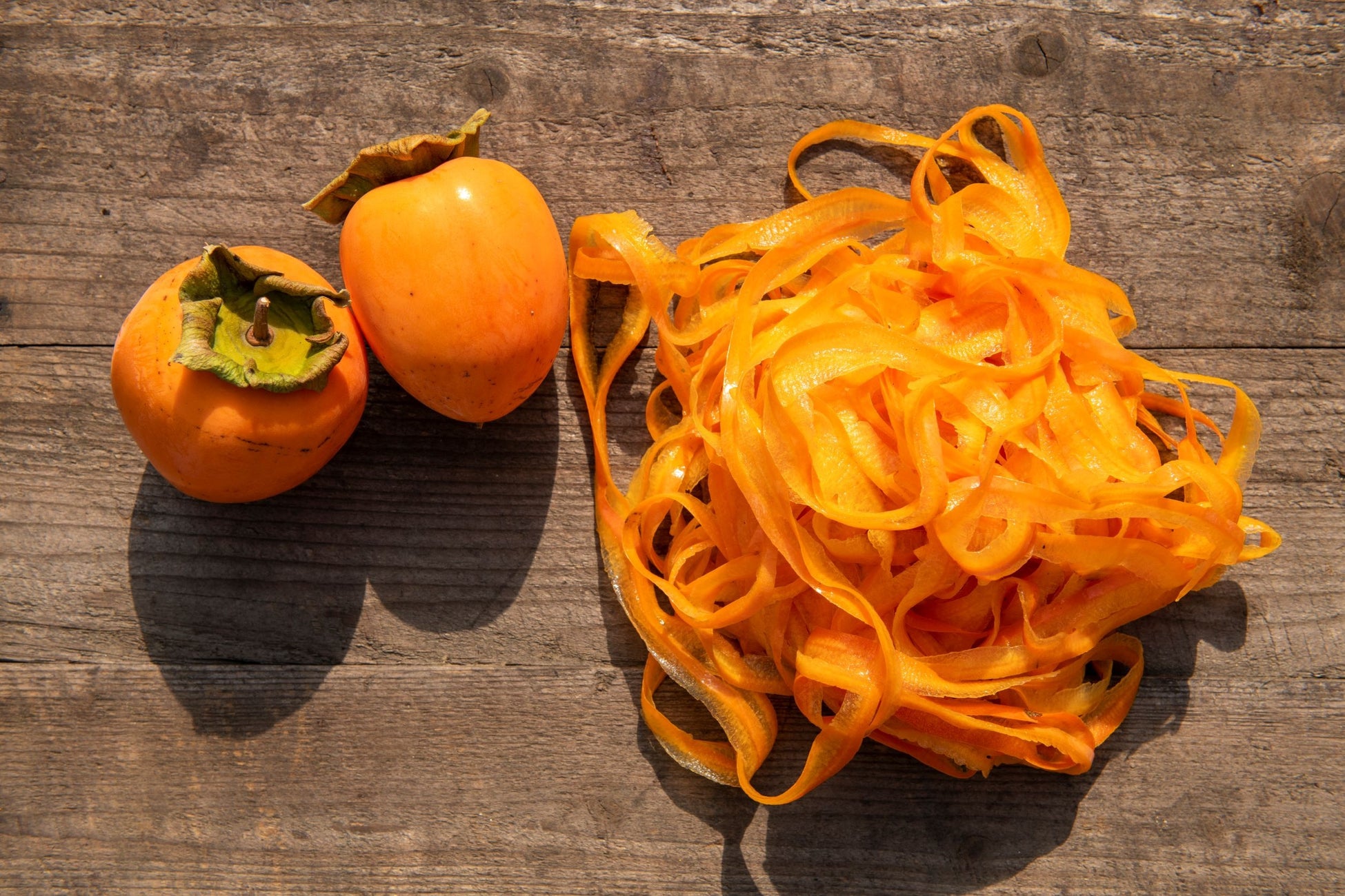 そこで『明⽇ わたしは柿の⽊にのぼる』では、福島県・国⾒町の農家の⽅々が愛情をもって育てた柿を少しでも無駄にすることのないよう、これまであんぽ柿の製造⼯程で惜しくも廃棄されていた「柿の⽪」を原料に採⽤することにしました。
