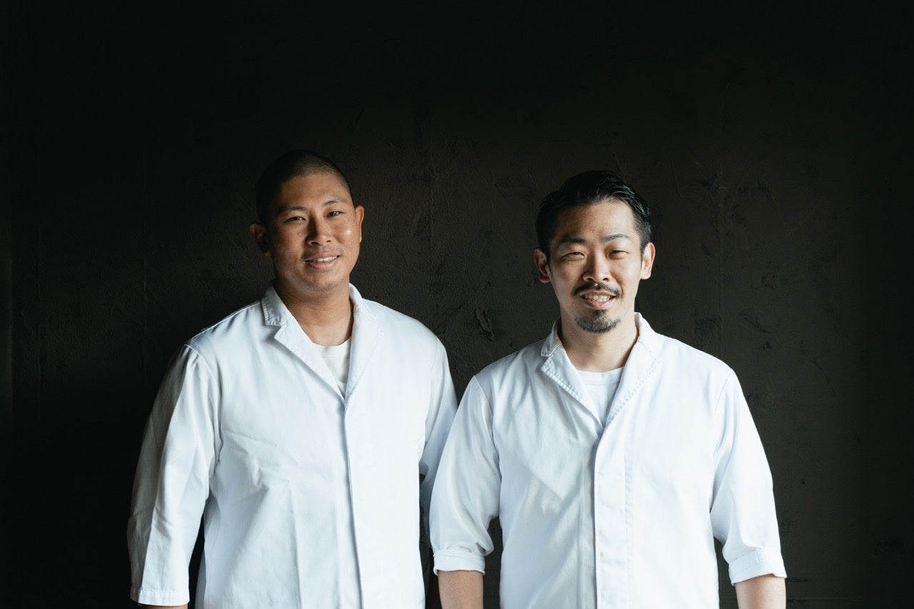 | 「酒井商会」について: 2018年渋谷にて開店。九州食材を使った和食と自然派ワイン、純米酒をはじめとしたこだわりのお酒のセレクトで瞬く間に予約困難店に。食べログ百名店。 「創和堂」について: 2020年恵比寿にて酒井商会の姉妹店として開店。ダイナミックなカウンターや店内から見える渋谷川沿いの静かなロケーション、和食の基本に忠実に料理しつつ、原始焼き、小鉢わっぱ盛りなど名物も。京都の仕出し屋で修行した料理長前田亮のお節も人気。ミシュランビブグルマン、食べログ百名店。 酒井 英彰(写真左)略歴: 福岡県出身。大学卒業後、オーストラリア・メルボルン近郊のフュージョンレストラン、 帰国後三笠会館にてフレンチを経験したのち、ゼットン各店にて料理長をつとめ、「並木橋なかむら」で和食を学ぶ。2018年渋谷に「酒井商会」にて独立。 人材育成にも力を入れており、2020年7月「創和堂」2023年1月「SHIZEN」をオープン。現在は現場に立ちながら、商品開発やプロデュースも積極的に行っている。 前田 亮(写真右)略歴: 香川県出身。京都の大学を卒業後、京都にある老舗の仕出し店「菱岩」にて9年間修業。 その後、銀座の割烹店を経て、2020年「酒井商会」へ。2021年より「創和堂」の料理長を務める。 |
