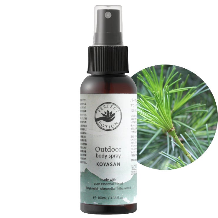 第一弾となる「アウトドアボディスプレー 高野山」では、高野山で大切に育てられたヒバやコウヤマキから抽出した精油を使用しております。パーフェクトポーションでは、今後もご当地アウトドアボディスプレーの企画で全国各地のアウトドアボディスプレーを作っていきたいと考えております。
