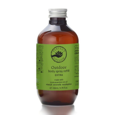 パーフェクトポーションでは、アウトドアボディスプレーシリーズ全3種の商品に200mLリフィル(詰替え用ボトル)を設定しております。