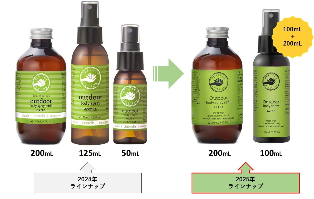 オーストラリア発のピュアアロマ & ナチュラルスキンケア ブランド <パーフェクトポーション> を展開するパーフェクトポーションジャパン株式会社(本社:京都府京都市 代表取締役 山本貴世)は、2025年3月21日(金)※5より、夏のアウトドアライフの必需品「アウトドアボディスプレー」シリーズ※2をリニューアルして発売いたします。