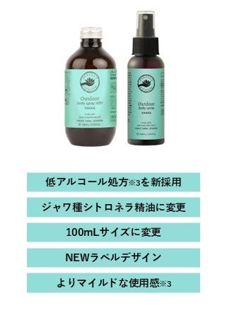 ※2:アウトドアボディスプレーエクストラ、アウトドアボディスプレーハッカ、アウトドアボディスプレーオーストラリアで、それぞれリニューアル内容は異なります。
