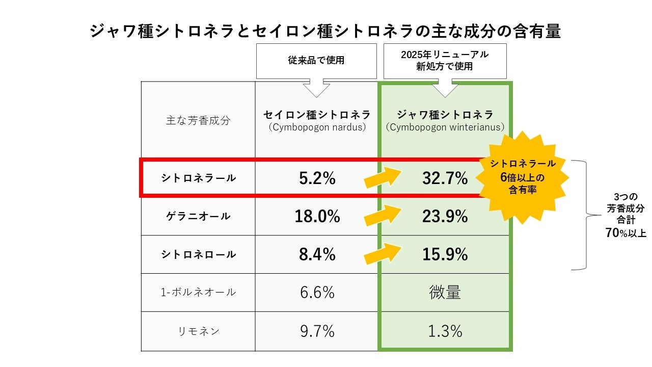 今回は、低アルコール処方※3はそのままに、ジャワ種シトロネラを使用してリニューアル。