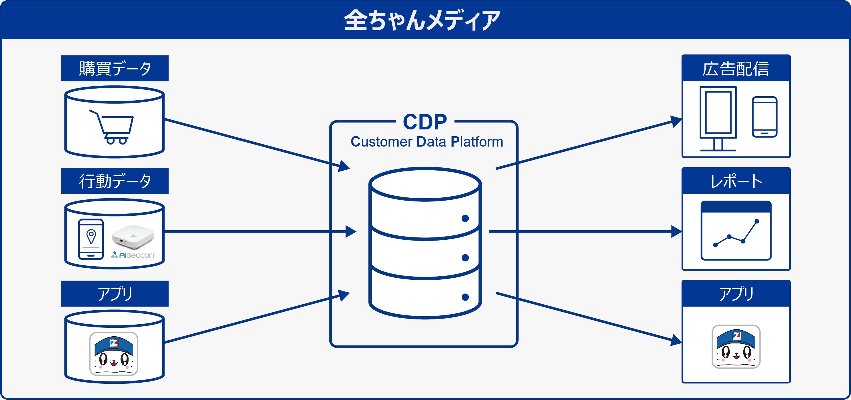 全ちゃんメディアは、お客さまの購買データなどを全日食独自のCDP(※3)に蓄積し、分析・可視化を行い、デジタル広告と連携することで、消費者行動に合わせた最適な広告の実施が可能となり、消費者により良い購買体験を提供します。