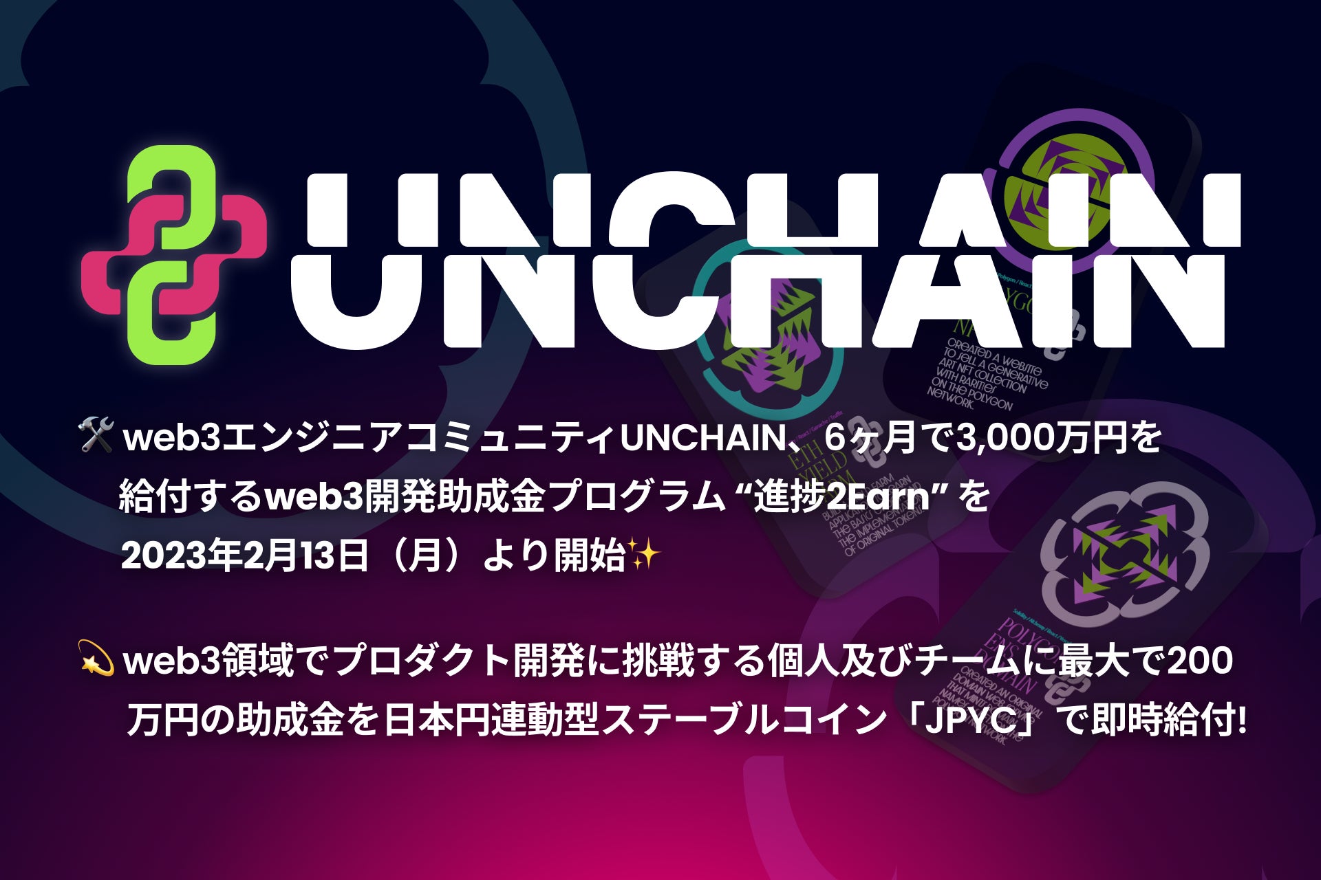 web3エンジニアコミュニティUNCHAIN、6ヶ月で3,000万円を給付するweb3開発助成金プログラム”進捗2Earn”を独自開発