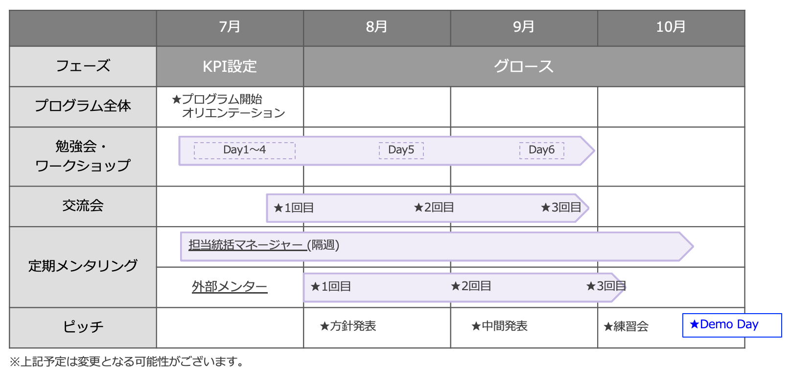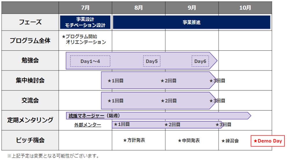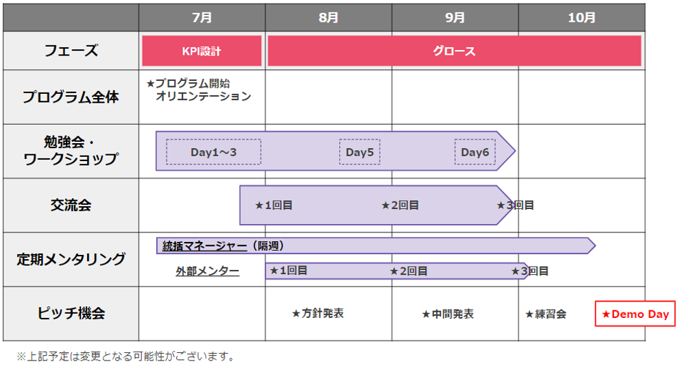 (2)アクセラレーションプログラムの内容とスケジュール