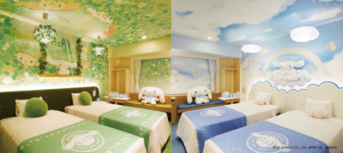 当施設が誇る「シナモロールルーム」、「空の部屋」と「森の部屋」が、しながわ観光大使である「シナモロール」と一緒に癒やしの時間を演出します。