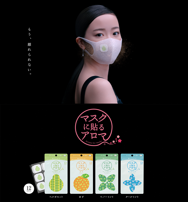コロナ禍でマスク生活が続く今、マスクの中の香りを一瞬にして快適な空間にする製品を提供すべく企画開発された「マスクに貼るアロマ」。