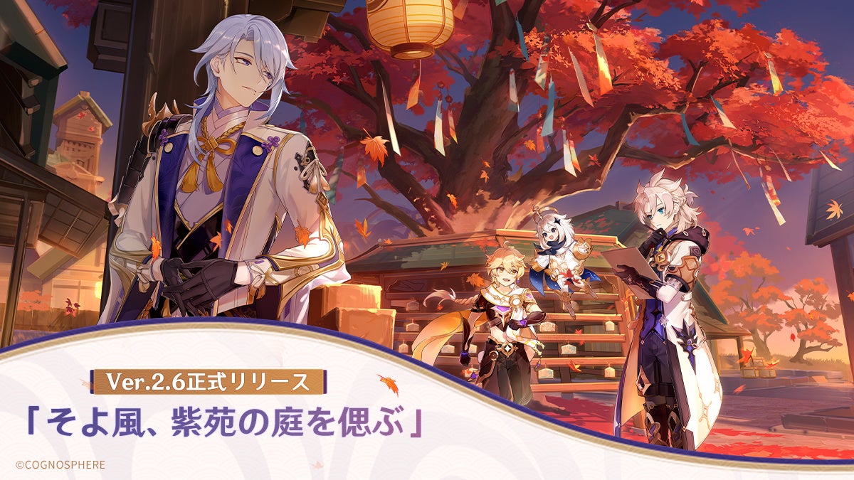 株式会社COGNOSPHERE(本社:東京都渋谷区、代表取締役社長:李 承天)は、本日3月30日(水)に、HoYoverseが配信するマルチプラットフォーム対応オープンワールドRPG『原神(げんしん)』のVer.2.6アップデートを実施いたしました。新★5キャラクター「磐祭葉守・神里綾人(水)」の登場や★5キャラクター「風色の詩人・ウェンティ(風)」の復刻登場、新エリアの開放、新イベント開催などをお知らせいたします。