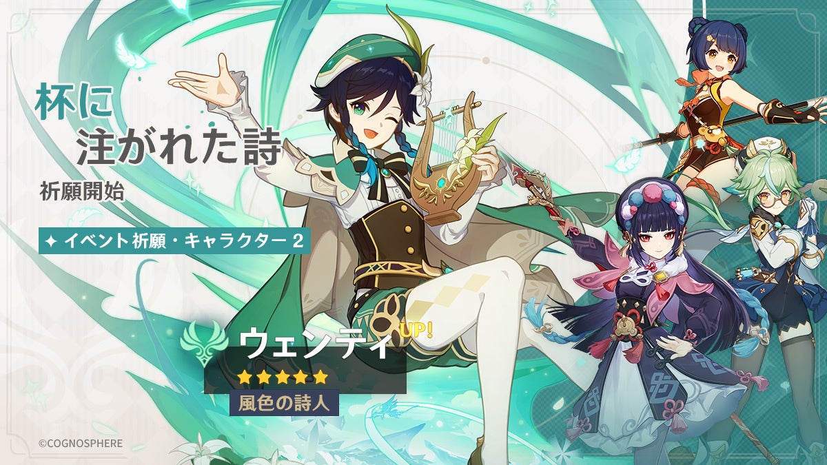 新★5「神里綾人(水)」(CV:石田彰)、★5「ウェンティ(風)」(CV:村瀬歩)がイベント祈願に登場!