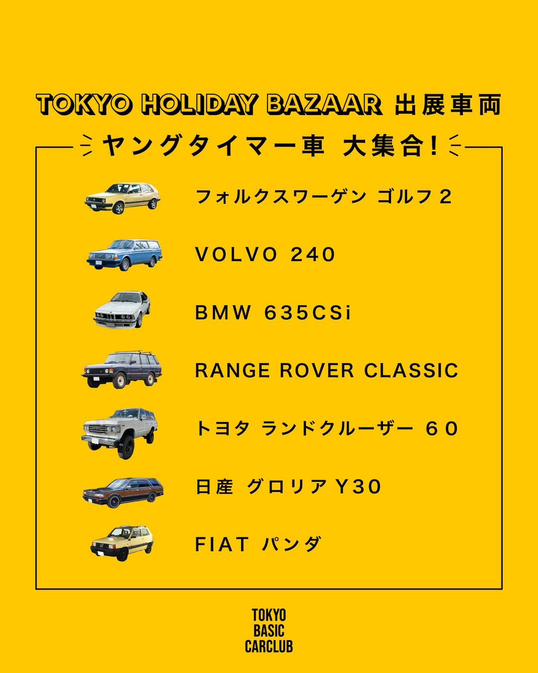 ヤングタイマー車が勢揃い!TBCC主催イベント【Tokyo Holiday Bazaar】5月3日(祝)開催決定!