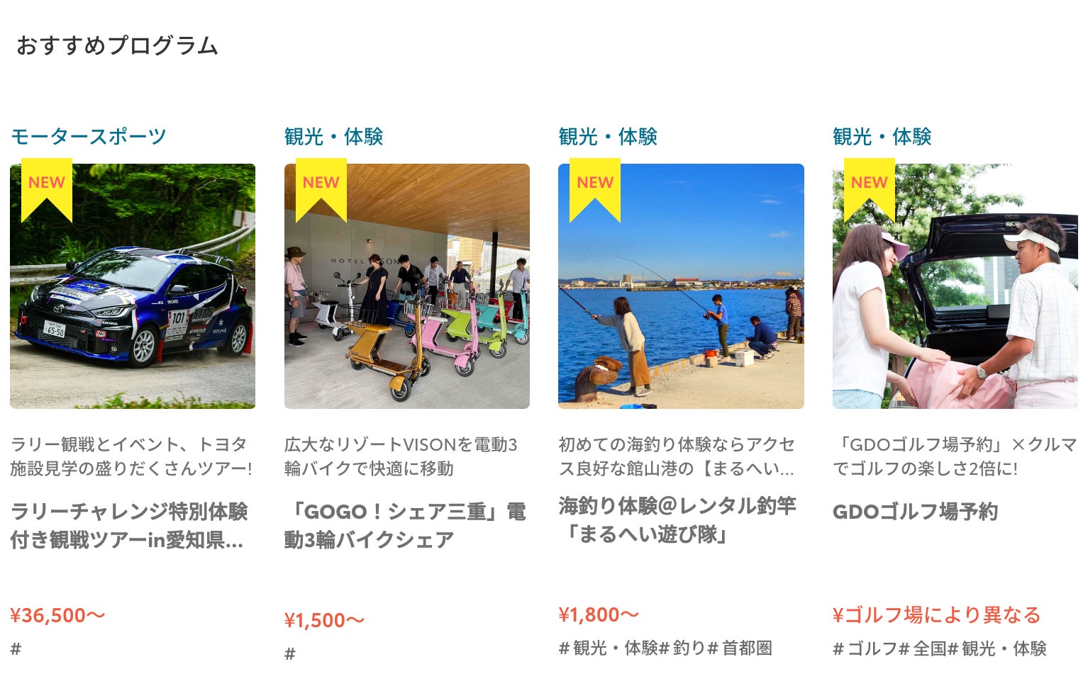 クルマライフの楽しさを広げるサービス「モビリティマーケット」。ドライブしたいと思い立ったときにぴったりなお出かけ先はもちろん、愛車のお手入れに役立つサービスなど、多彩なプログラムをWEBサイトでご紹介しています。