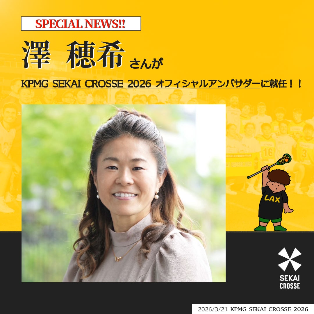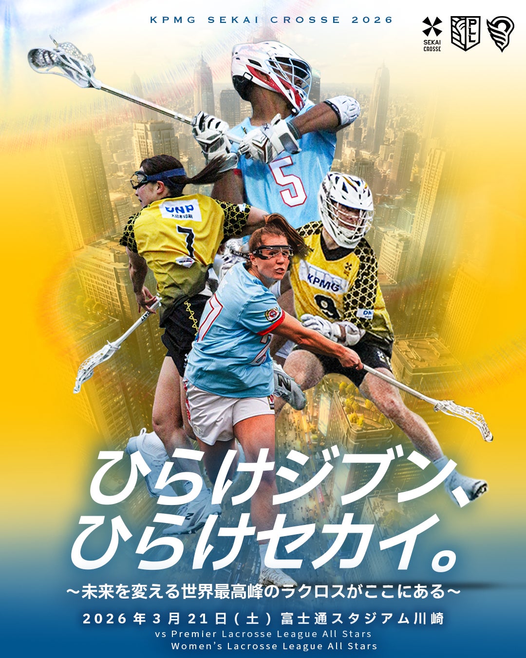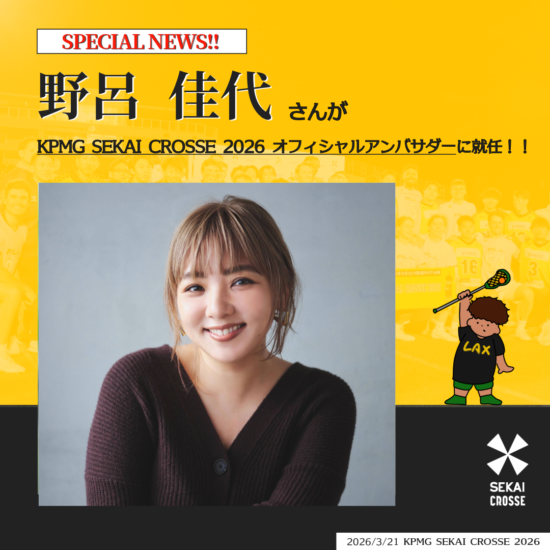 スポーツとカルチャーが交差する国際イベントが今年も始動する。2026年3月21日(土)に富士通スタジアム川崎で開催されるラクロス国際大会「KPMG SEKAI CROSSE 2026」のオフィシャルアンバサダーに、さらば青春の光さん、野呂佳代さん、澤穂希さんの就任が決定しました。