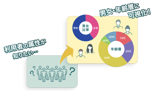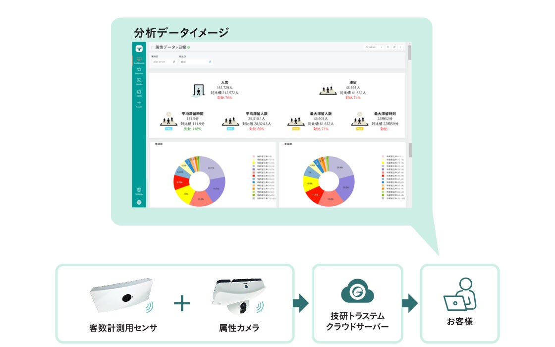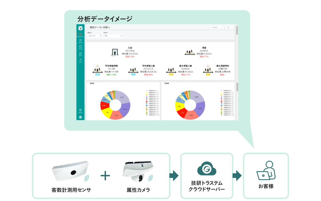 従来の来店客数情報に、新サービスの属性データ(男女・年齢層)を統合する事により、顧客理解をより深めていただくことが可能になります。