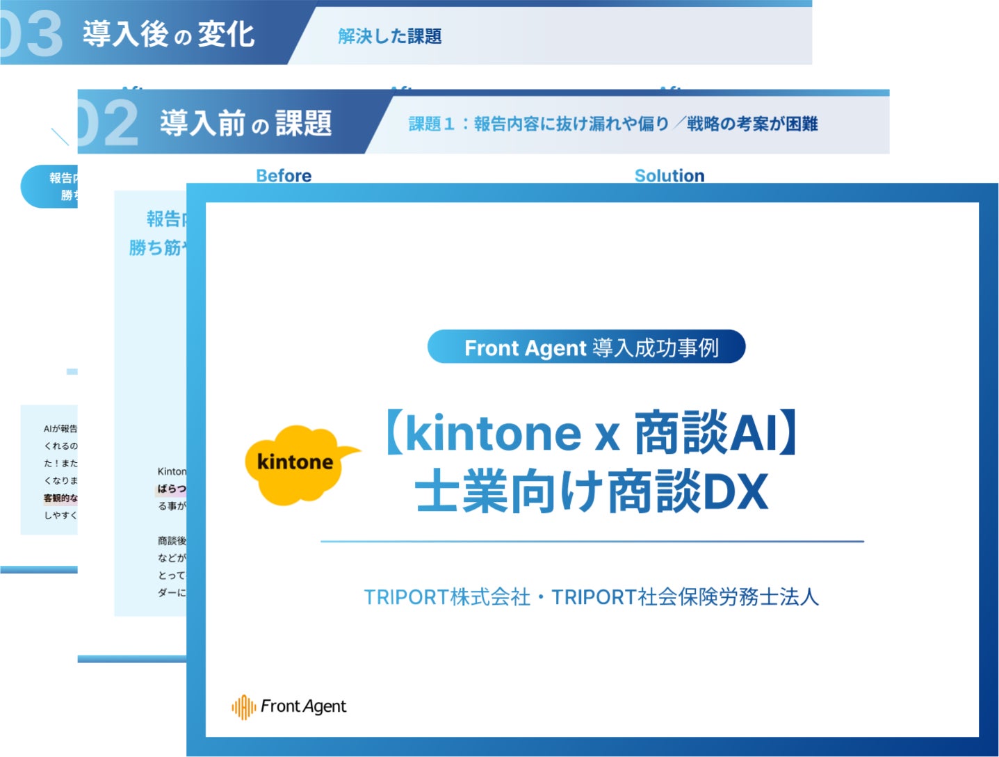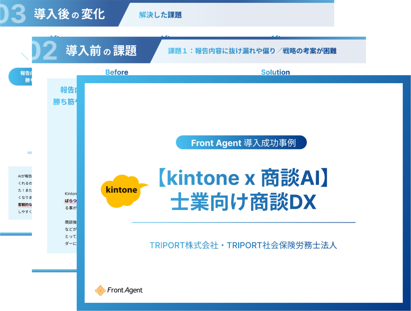 【導入成功事例】【kintone×商談AI】士業向け商談DXに革新/商談の勝ち筋を可視化する商談アシストプラットフォーム「Front Agent®」