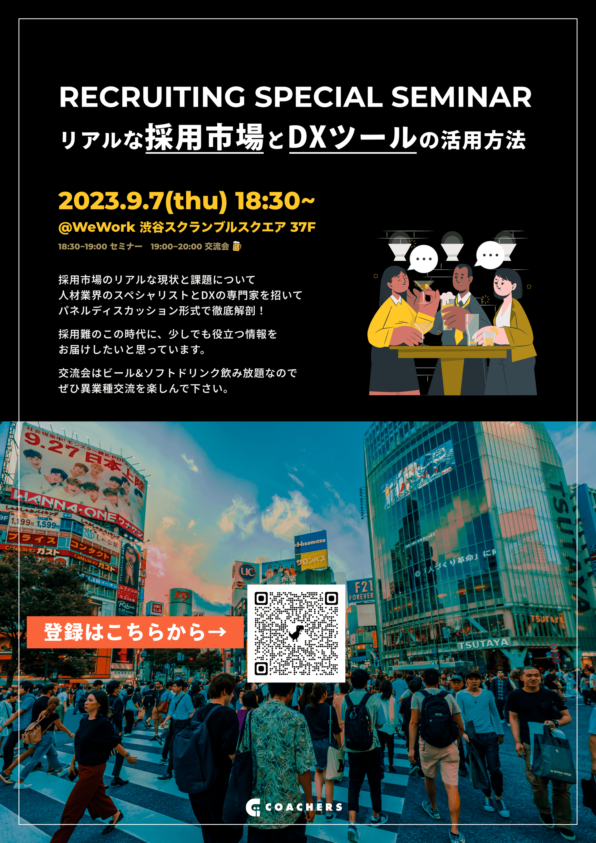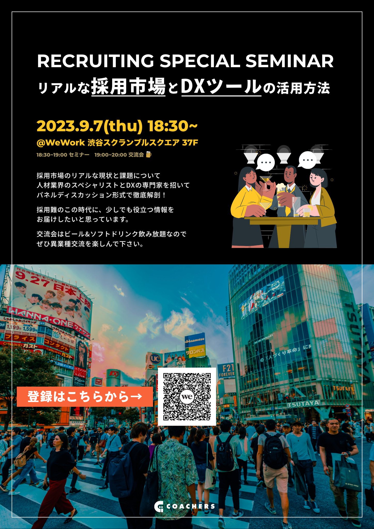 WEWORKスペシャルセミナー開催「リアルな採用市場とDXツールの活用方法」2023.9.7(thu)18:30~@渋谷スクランブスクエア37F ※参加費無料