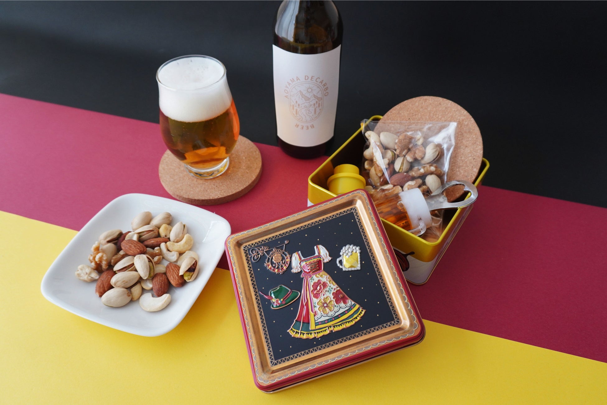 缶の蓋の黒と、側面の赤と黄色のラインでドイツの国旗を表現し、