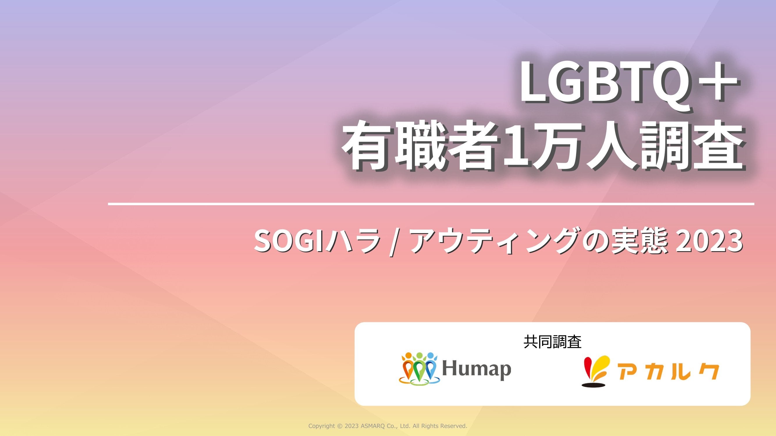 2023年4月に株式会社アスマークと共に共同で有職者1万⼈に対して、「職場におけるSOGIハラスメント、アウティングに特化したLGBTQ+の調査」を行いました。