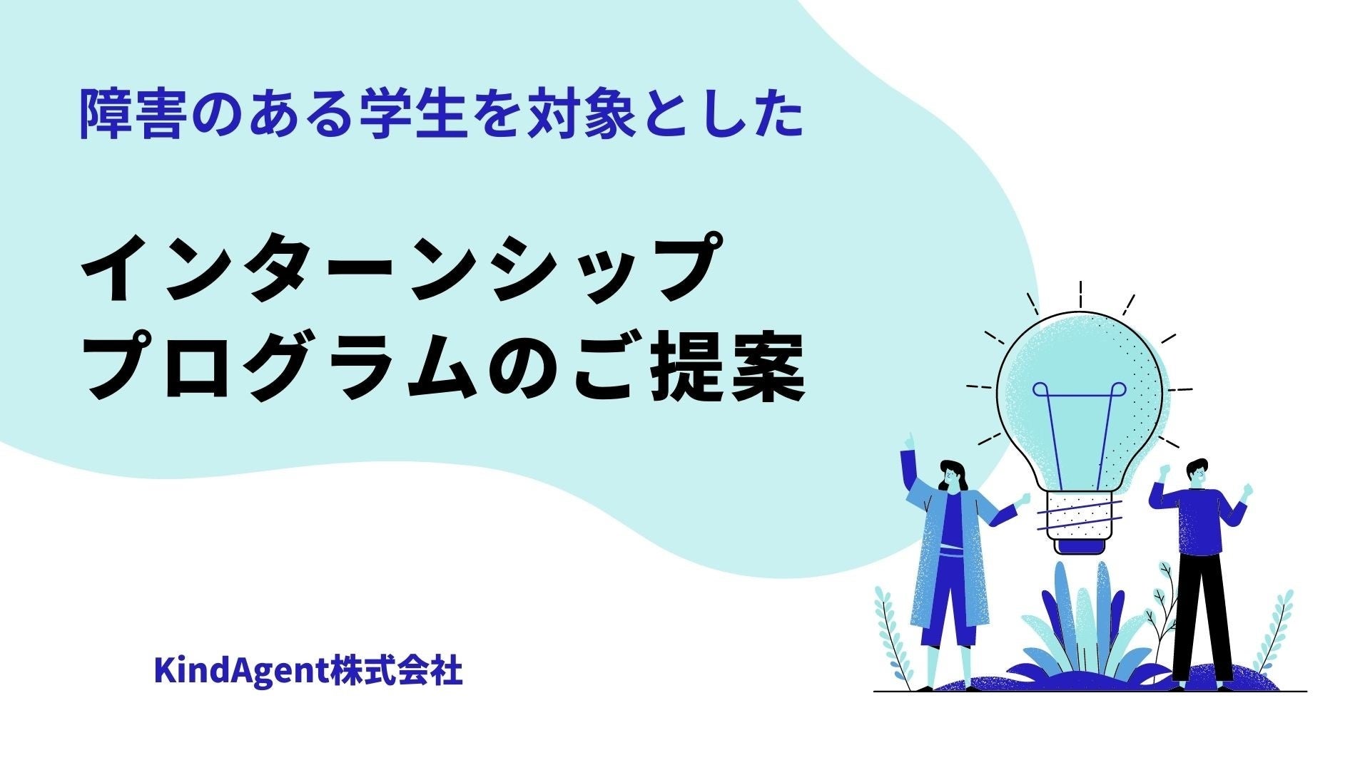 KindAgent株式会社は4月より、障害のある学生に特化したインターンシッププログラムの提供を開始致しました。もともと障害のある学生の多くが就職活動に苦戦し、非常に不幸なケースを多く目の当たりにしてきた事から、当事者の学生100人に対して就職活動に関するアンケート調査を行いました。そのアンケート調査から、当事者学生にとって理想的なインターンシッププログラムとは、「障害特性への理解がある」「自己認知が進む」事が重要であるということが分かりました。そこで障害のある学生に特化したインターンシッププログラムを提供し、障害のある学生のキャリア形成支援と、雇用をする企業の採用支援を行い、就職活動で失敗をしてしまう学生を一人でも減らしていく取組に貢献したいと考えております。