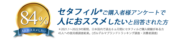 *4 2021.1~2022.9の期間、日本国内で過去6か月間にセタフィルご購入経験がある方45名への使用感調査結果。(ガルデルマブランドトラッキング調査・消費者調査)