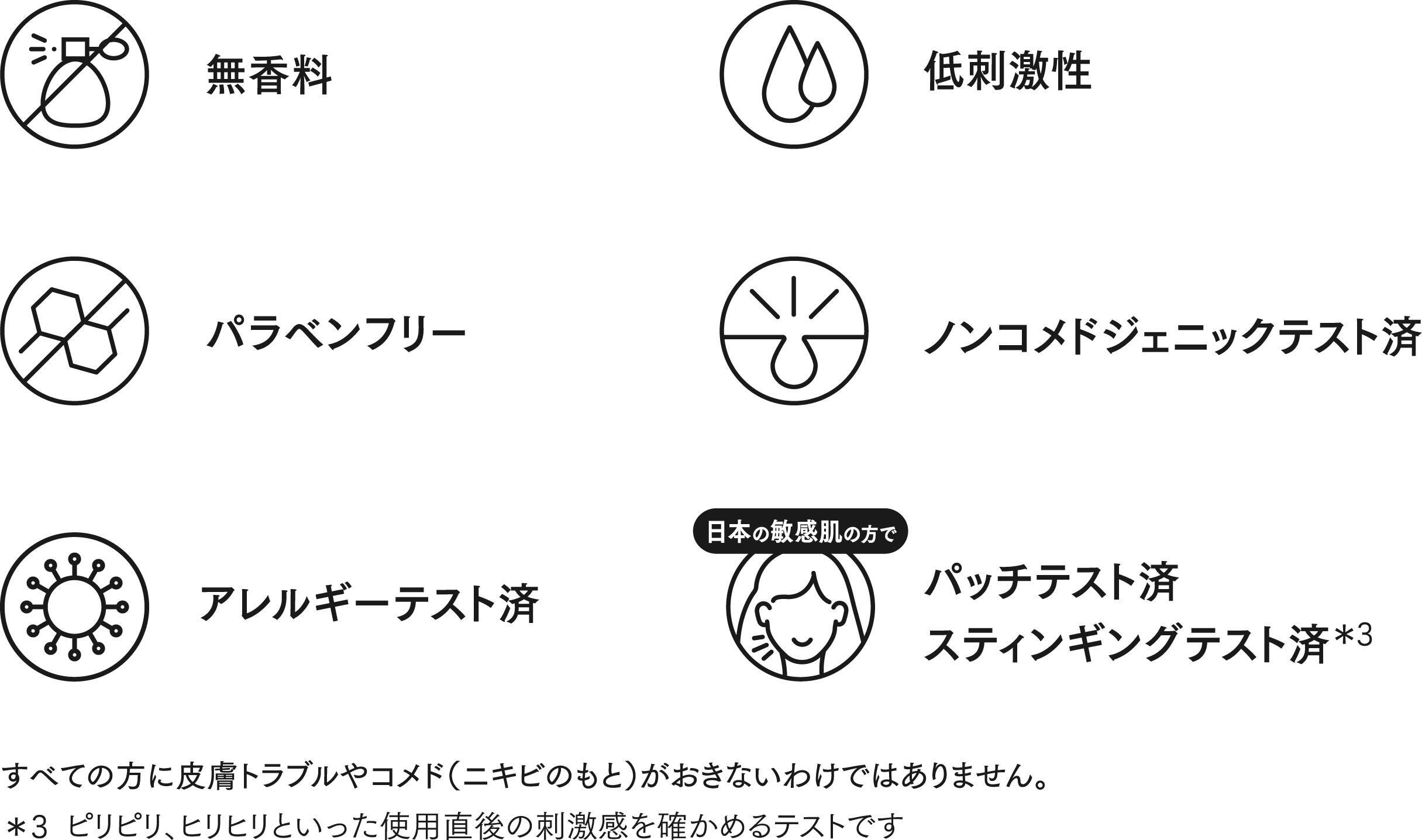 皮膚科学に基づいた製薬会社独自の処方で、無香料・低刺激性。