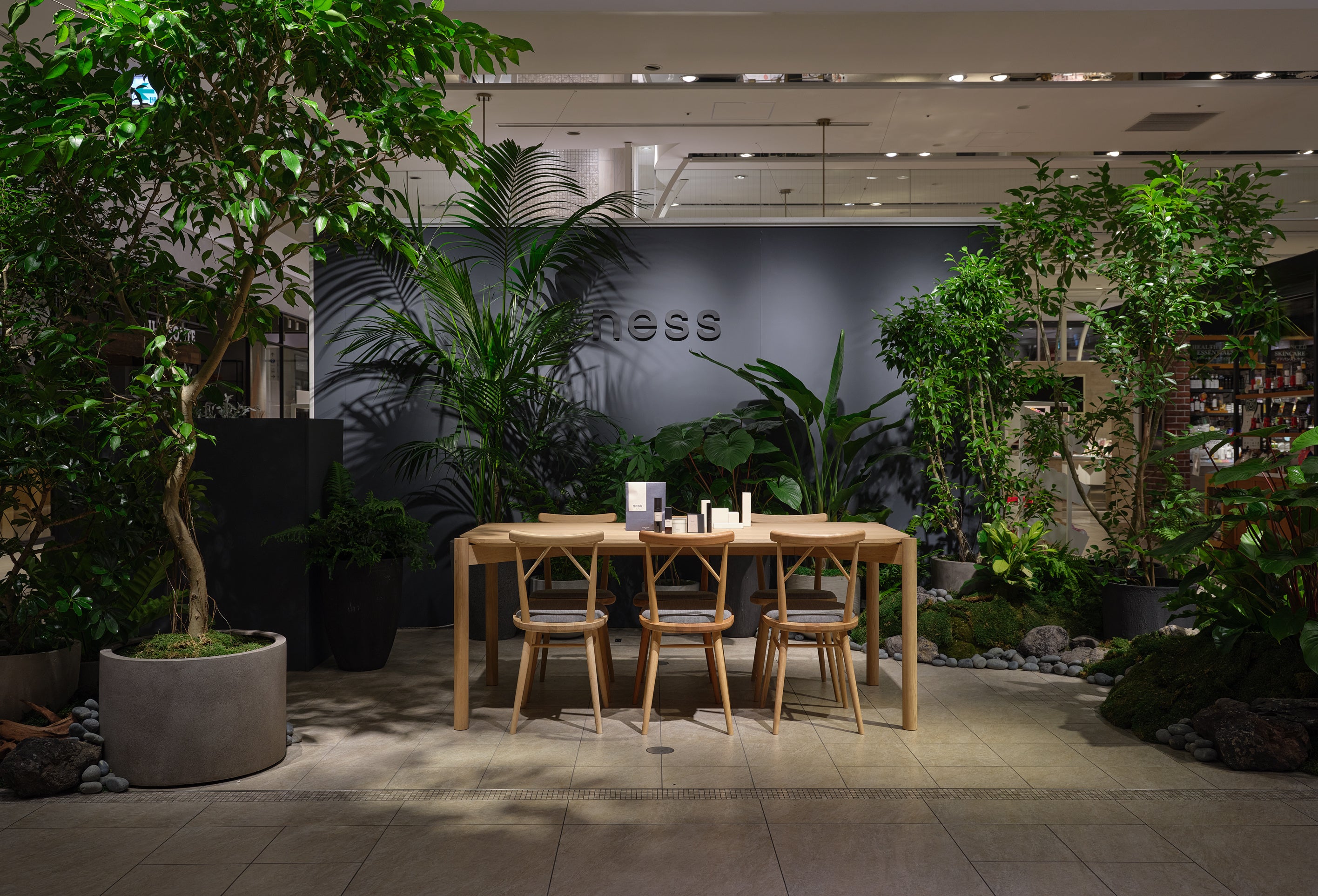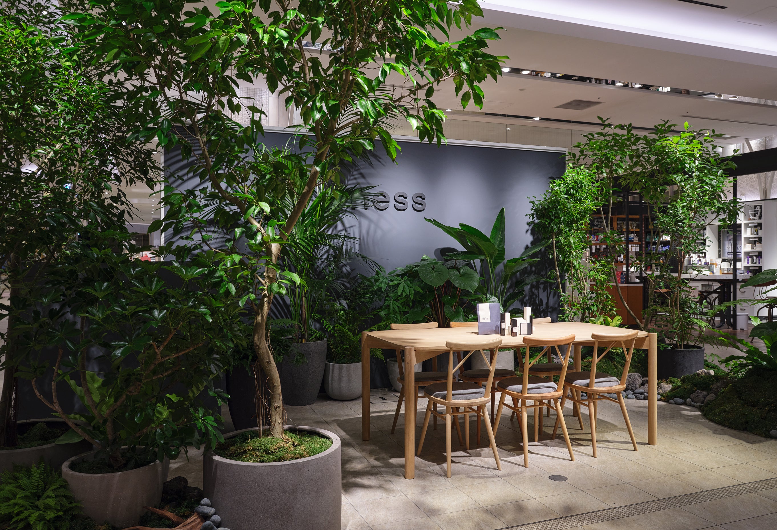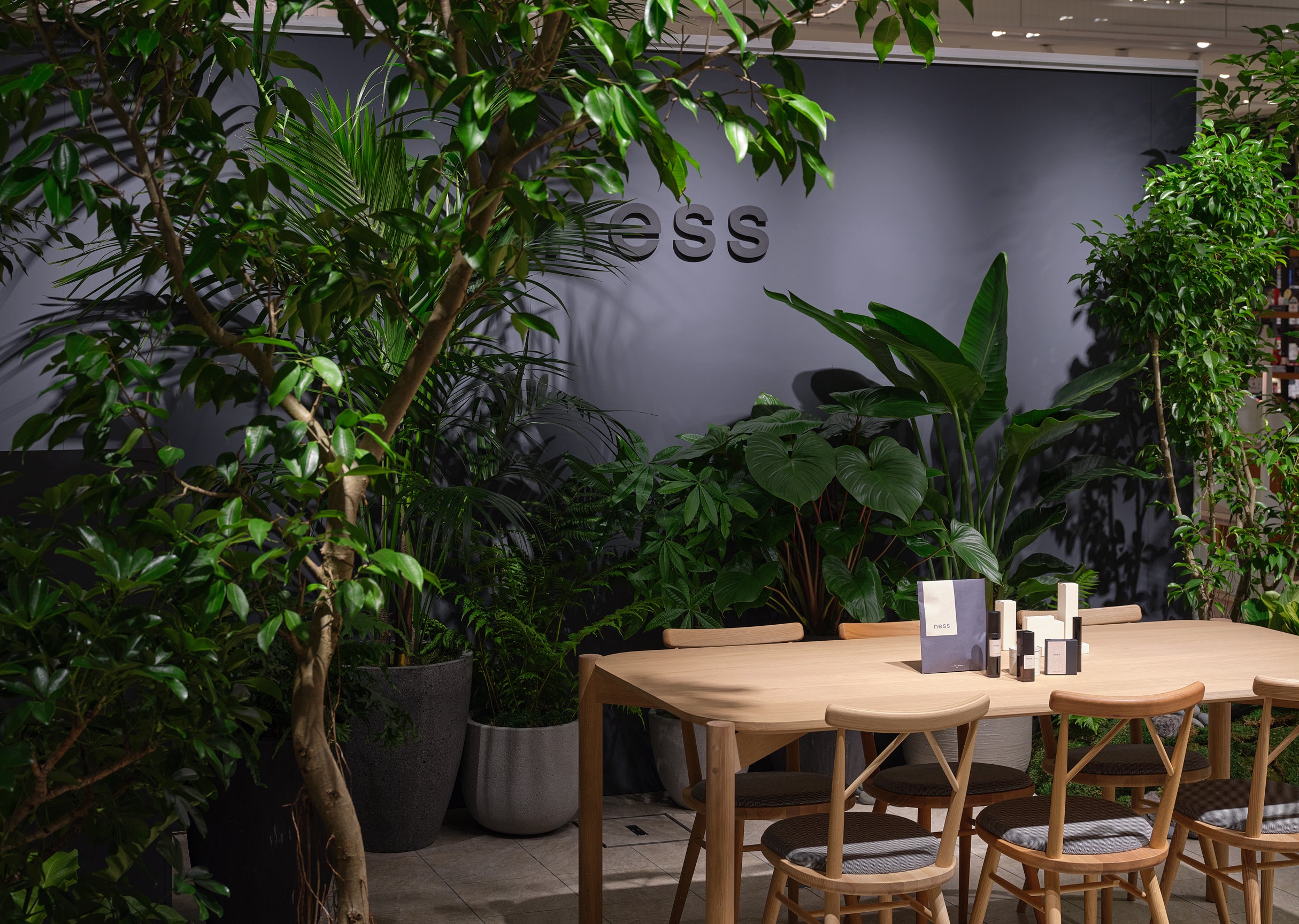 POP UP SHOPの店舗は、nessのジェンダーレス、エイジレス、ボーダーレスな世界観を多様なグリーンで表現、cosmeticsのテスターによる試用・サンプルのご提供や、巡り・眠りにフォーカスした和漢ハーブティーお茶の試飲などnessにリアルに触れて感じていただける貴重な機会となり、お客様からは「店舗の世界観が素敵」「サンプルを使ってみて良かったので購入しました」など大変ご好評をいただきました。