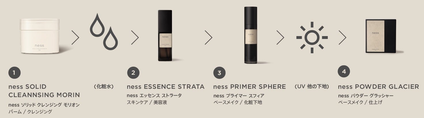 この4ステップは、化粧水・乳液・ファンデーションなどのアイテムなしでも完成する考え方で、これまであまりスキンケアをしてこなかった男性にもぜひおすすめします。