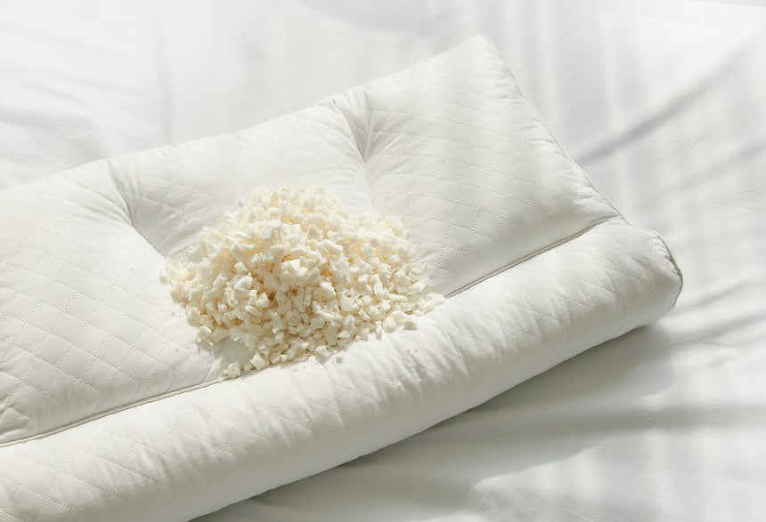秒睡まくらには単体枕と同じ容量のラテックスが、evezary社の自社工場の独自製法でたっぷり50万個が枕に封入されています。