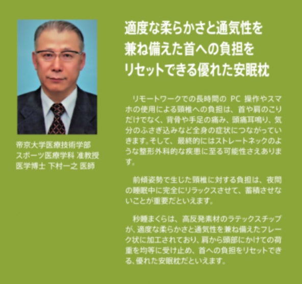 医学博士でもある帝京大学医療技術学部の「下村一之」准教授からもスポーツドクターとしての見地で「秒睡まくら」は、優れた枕であることを推奨して頂きました!