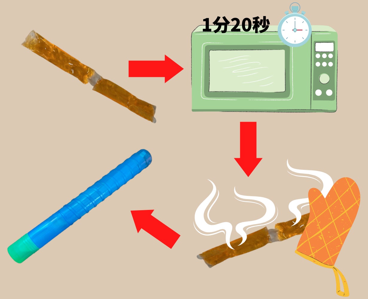注)かなり温熱材が熱くなりますので、温めた温熱材をレンジから出すときは、やけどをしないように、タオルや、ミトンなどを使用して取り出してください。