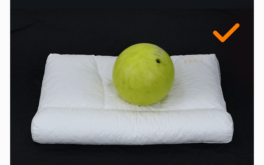 頭と同じ重さとして5kgのボーリング玉も、ラテックスの「反発力」で、秒睡まくらの上をかる~くスムーズに転がることが分かります。