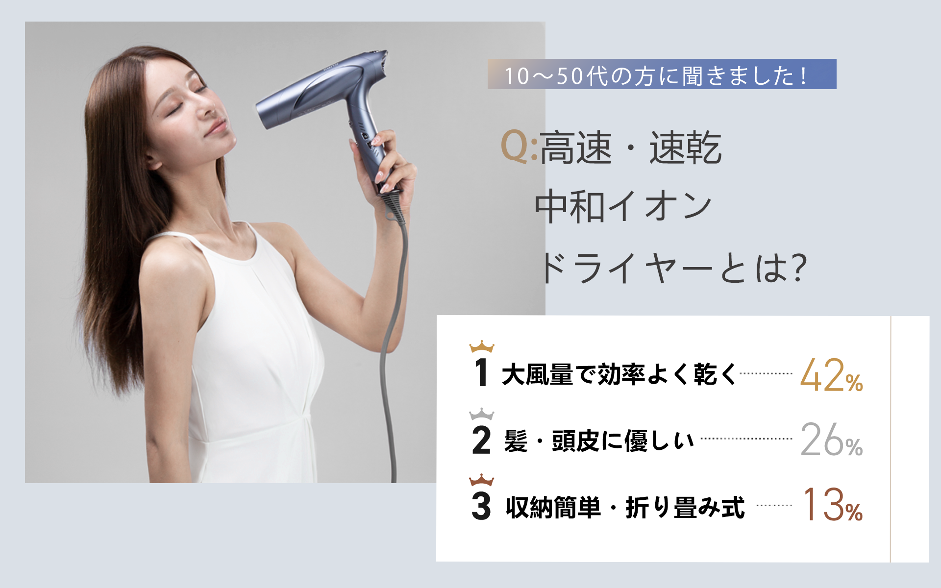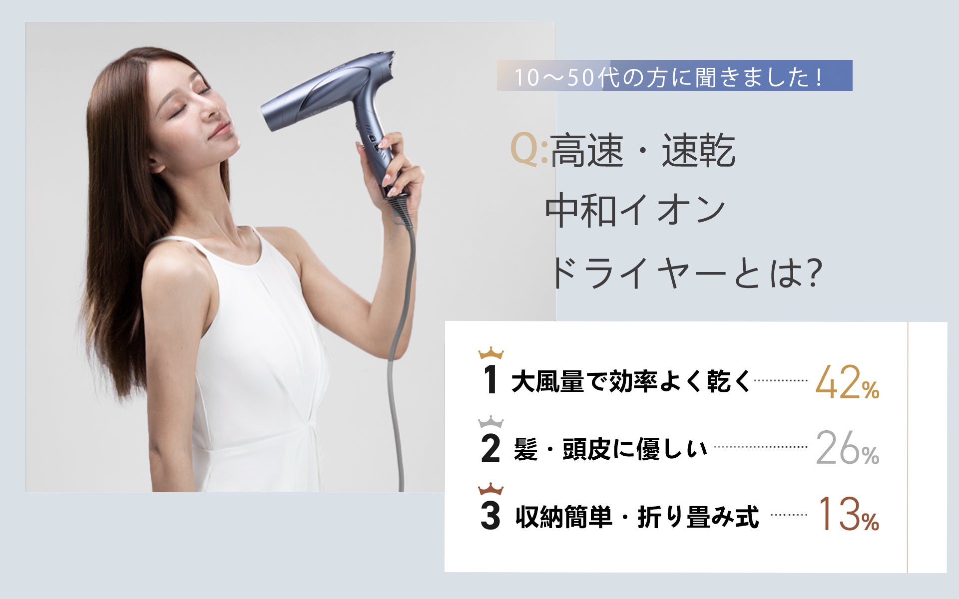 高速・速乾に中和イオンを放出で静電気を95%抑え、髪のダメージを抑制!
