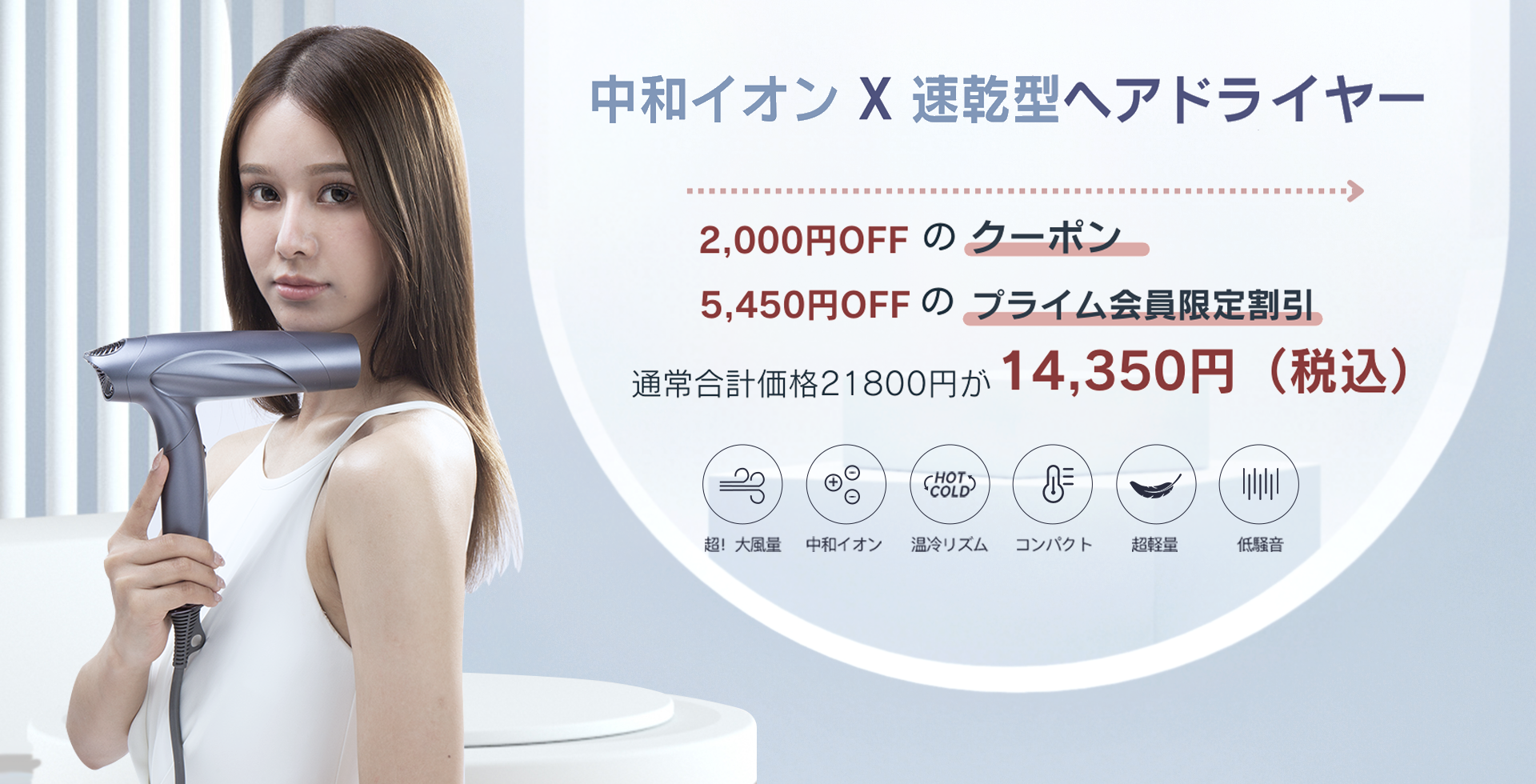 中和イオンはプラスイオンとマイナスイオンが同時に放出する状態の総称です。 プラスとマイナスイオンが同時に髪に付着し、髪週りのイオンがバランスのとれた状態になり、数千万の中和イオンを放出で静電気を95%抑え、髪のキューティクルダメージを抑制し、髪の奥までうるおく、本来のツヤを守ります。髪の毛の根元に深く入り込み、頭皮の健康を高め、髪の切れを減らすことができます。