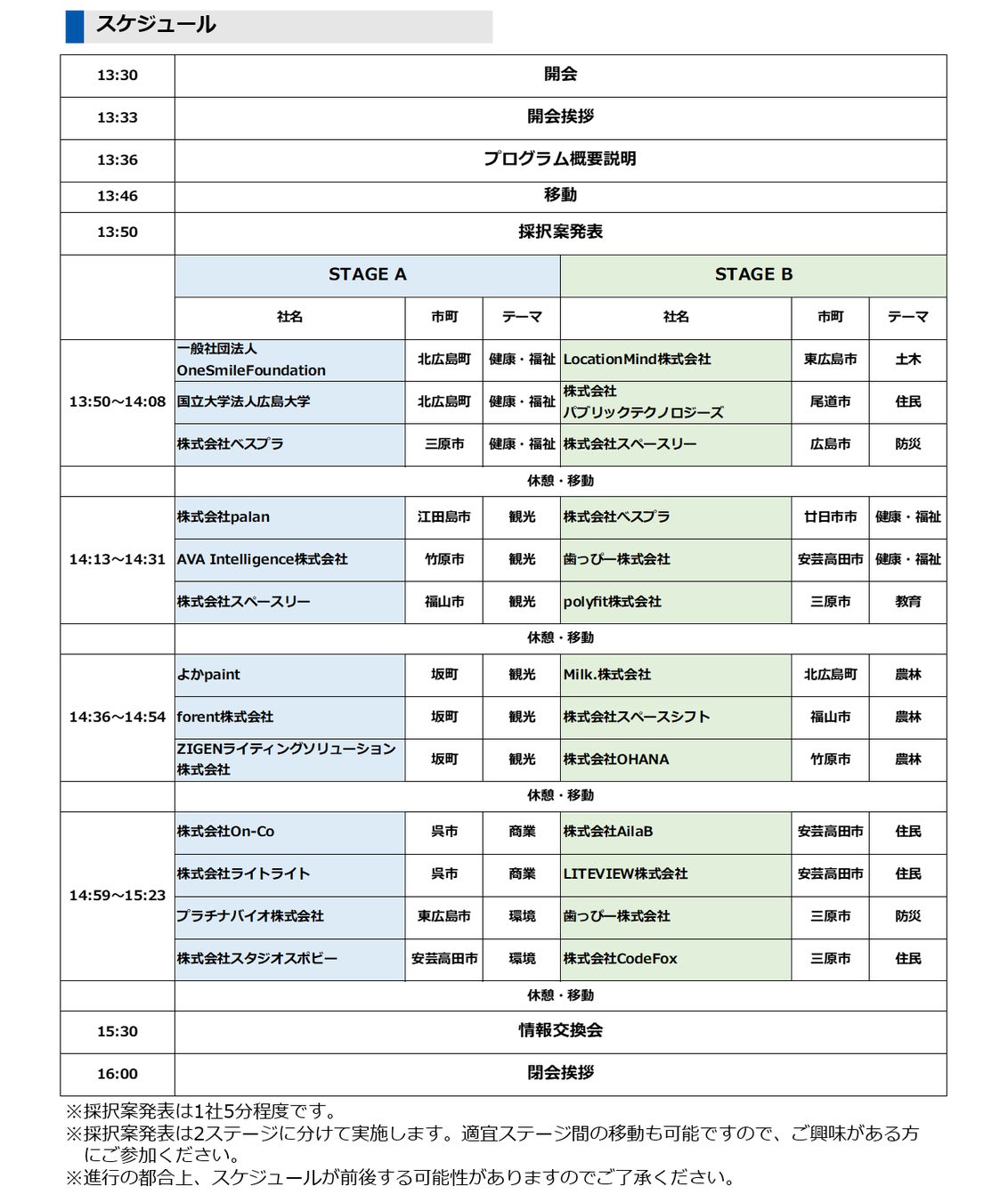本プログラムでは、2023年8月に公開した広島県内15市町が抱える地域課題等に対し、スタートアップ等から304件の課題解決に資するサービス等のエントリー・提案があり、各参加市町による審査の結果、26件が採択となりました。