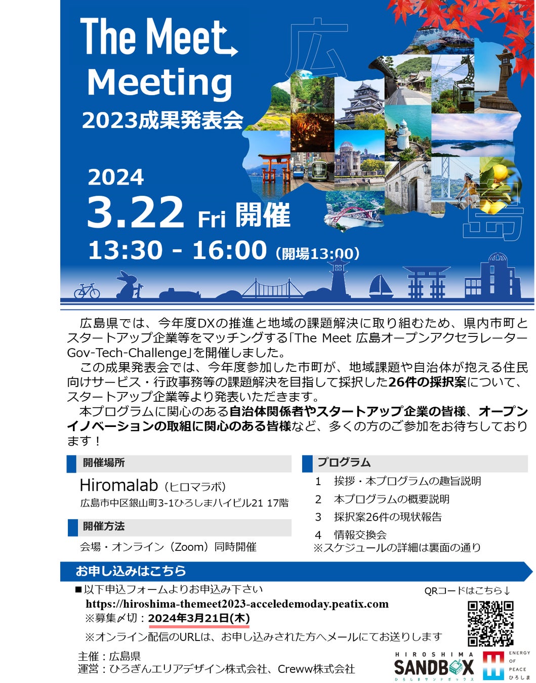 「The Meet Meeting」の開催について(「The Meet 広島オープンアクセラレーター Gov-Tech-Challenge」成果発表会)