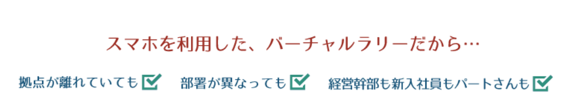 WeRUNをご利用の企業様からは、「従業員の健康意識が高まった」「イベントを通じて、社員に共通の話題ができ、コミュニケーション活性化に役立った」「社長から新入社員まで役職を問わず盛り上がり、賑わいが生まれた」「会ったことのない他拠点の社員と接点を持つことができた」などのお声をいただいています。